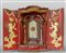 Altarolo portatile in legno laccato in policromia con figure di angeli dorati su fondo rosso cassettino sottostante nella parte centrale due colonne marmorizzate sormontate dallo Spirito Santo Italia Centrale I metà sec.XVIII