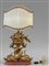 Lampada in legno dorato alla base due delfini intrecciati che sorreggono un cesto di frutta sec.XVIII/XIX