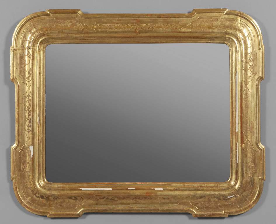 Grande specchiera a vassoio in legno dorato Francia sec.XIX (piccole mancanze nella doratura)