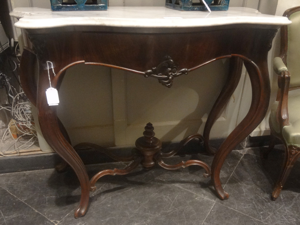 Consolina Luigi Filippo in mogano cassetto nella fascia piano in marmo sec.XIX