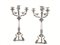 Coppia di candelabri di gusto Impero, secolo XX, in argento, fusto cesellato a foglie, base tripode con sostegni modellati a delfini, ciascuno a quattro luci, alt. cm 42, g 2640, lievi danni (2)