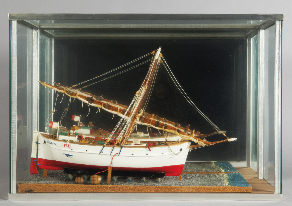 Modellino di leudo in legno in teca moderna