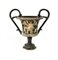 DECORAZIONE ACCESSORIA: interamente verniciato in nero ad eccezione della parte inferiore interna delle anse e del bordo esterno del piede; sull'orlo e sotto la scena figurata kyma ionico