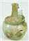 Brocchetta con orlo ingrossato, collo cilindrico, corpo globulare, anello in rilievo fra collo e corpo, fondo concavo, ansa a nastro applicata dal collo al ventre