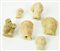 Sei teste pertinenti a statuette votive, fra le quali spiccano due teste maschili barbate di uomo maturo di bella qualità e quattro teste femminili con acconciature variegate