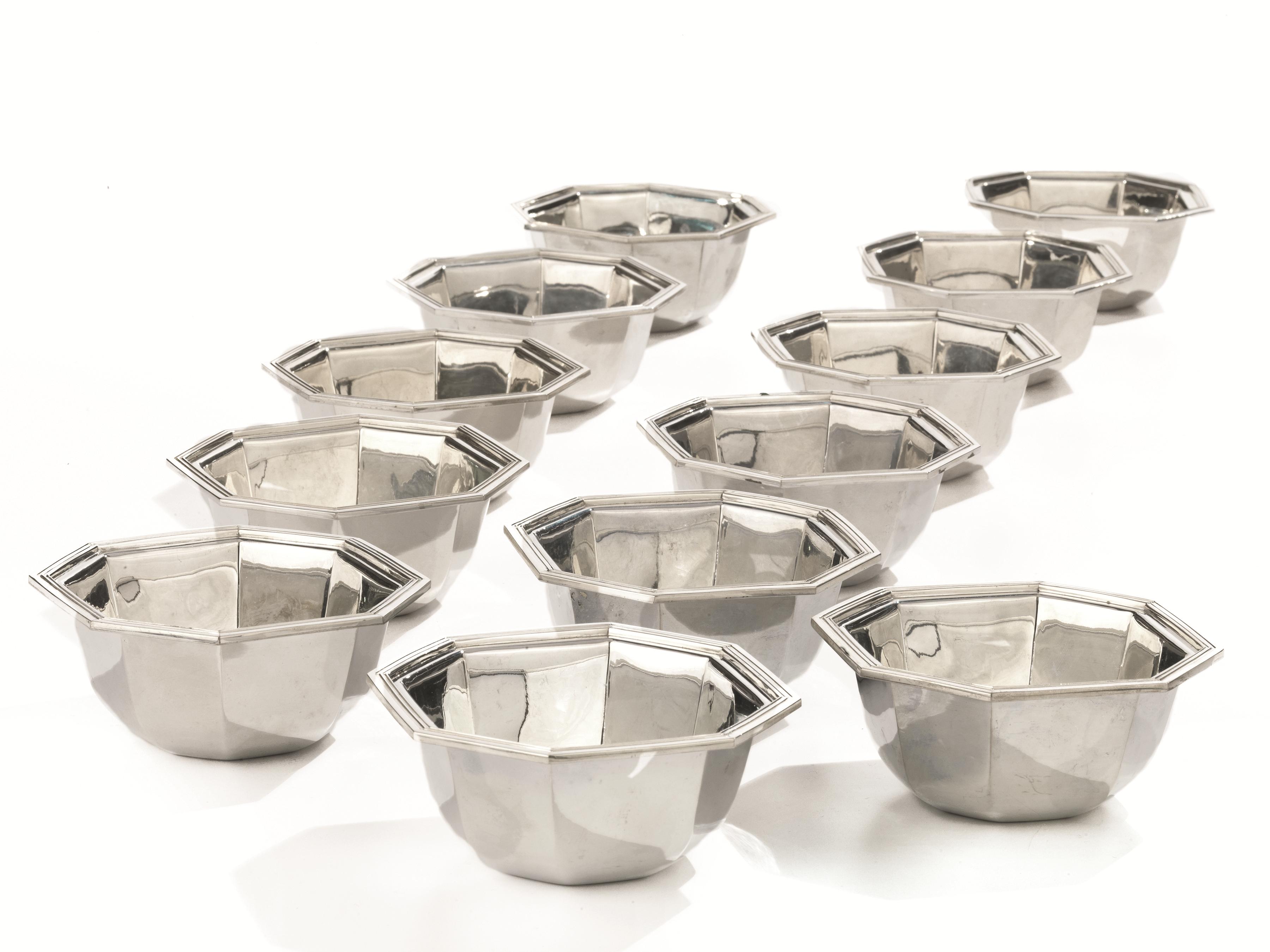 Dodici coppette lavadita, di forma ottagonale, in argento, g 2540, (12)