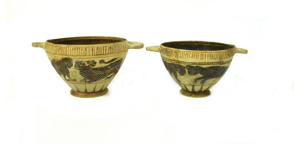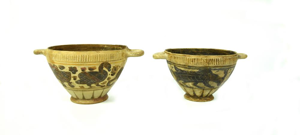 DUE SKYPHOI ETRUSCO CORINZI DATAZIONE: VI sec. a. C. MATERIA E TECNICA:...