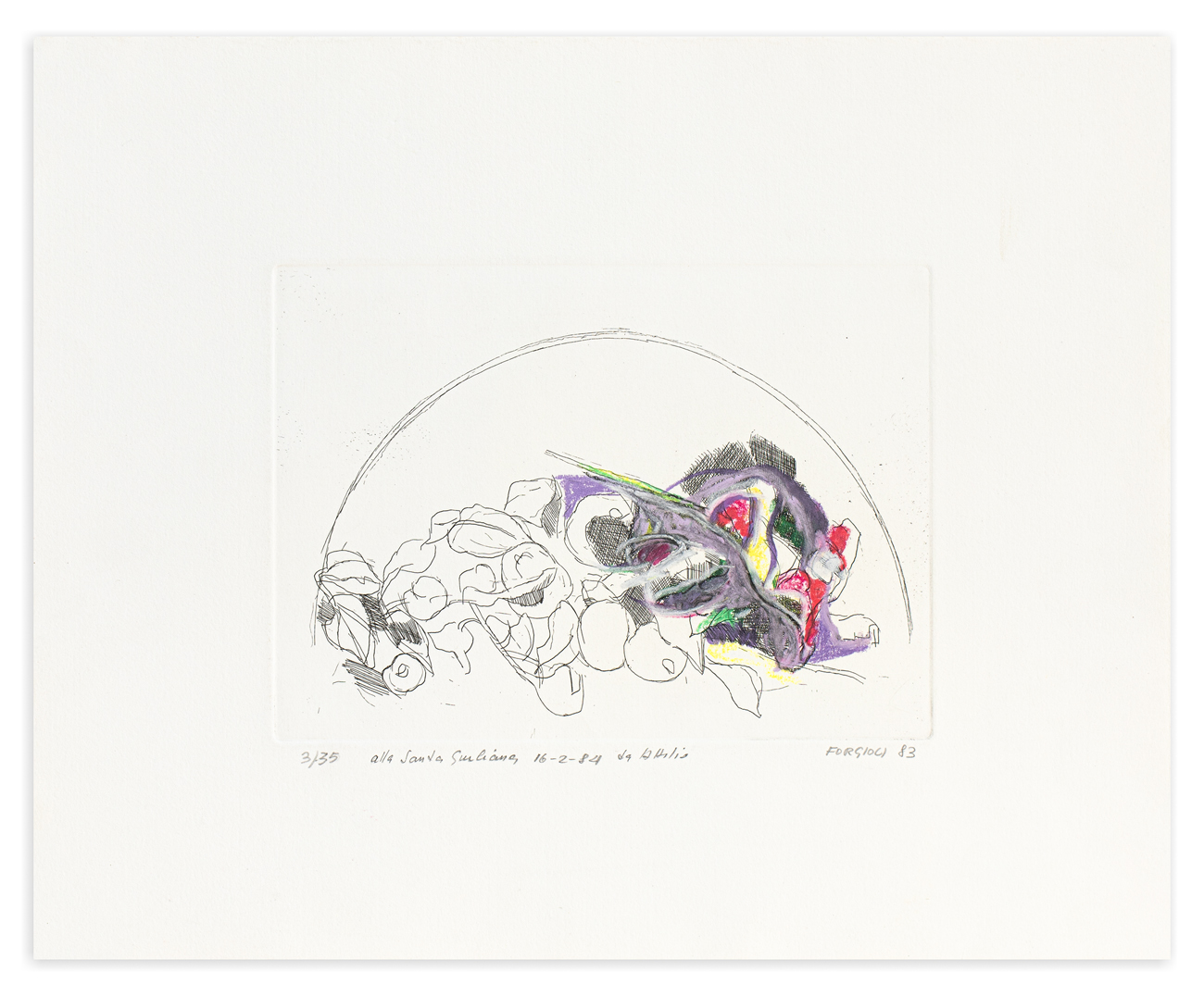 Firma, datazione, dedica ad personam e numerazione (Esemplare 3/35) a matita al fronte