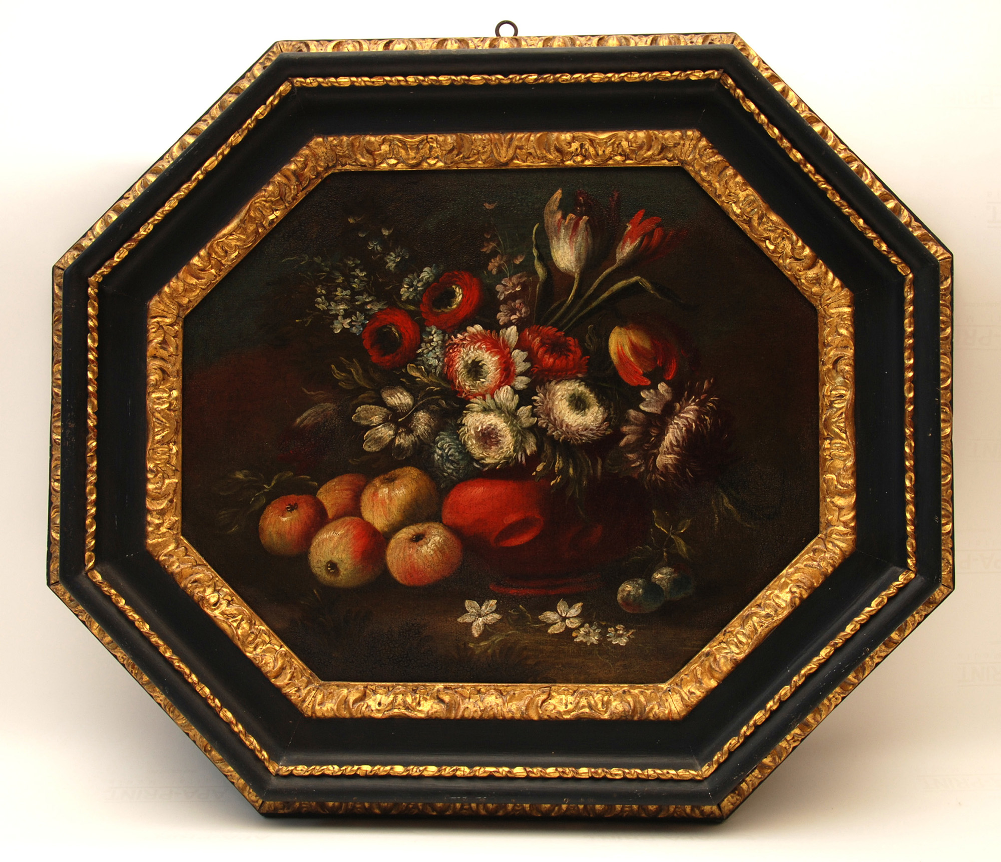 Precedente Lotto 17 Successivo Casa d'Aste Martini - C.so Cavallotti 76, 18038 Sanremo Asta 71 Sessione unica sabato 25 settembre 2021 ore 15:00 (UTC +01:00) DIPINTO natura morta ottagonale entro cornice antica sec.XVIIIcm. 40x50