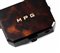 di forma rettangolare, coperchio inciso a righe nella cui parte superiore sinistra è inserito entro una riserva rettangolare un orologio, chiusra decorata da una giada cabochon, all'interno scomparti e carnet in avorio con custodia, g 500 lordi (2)