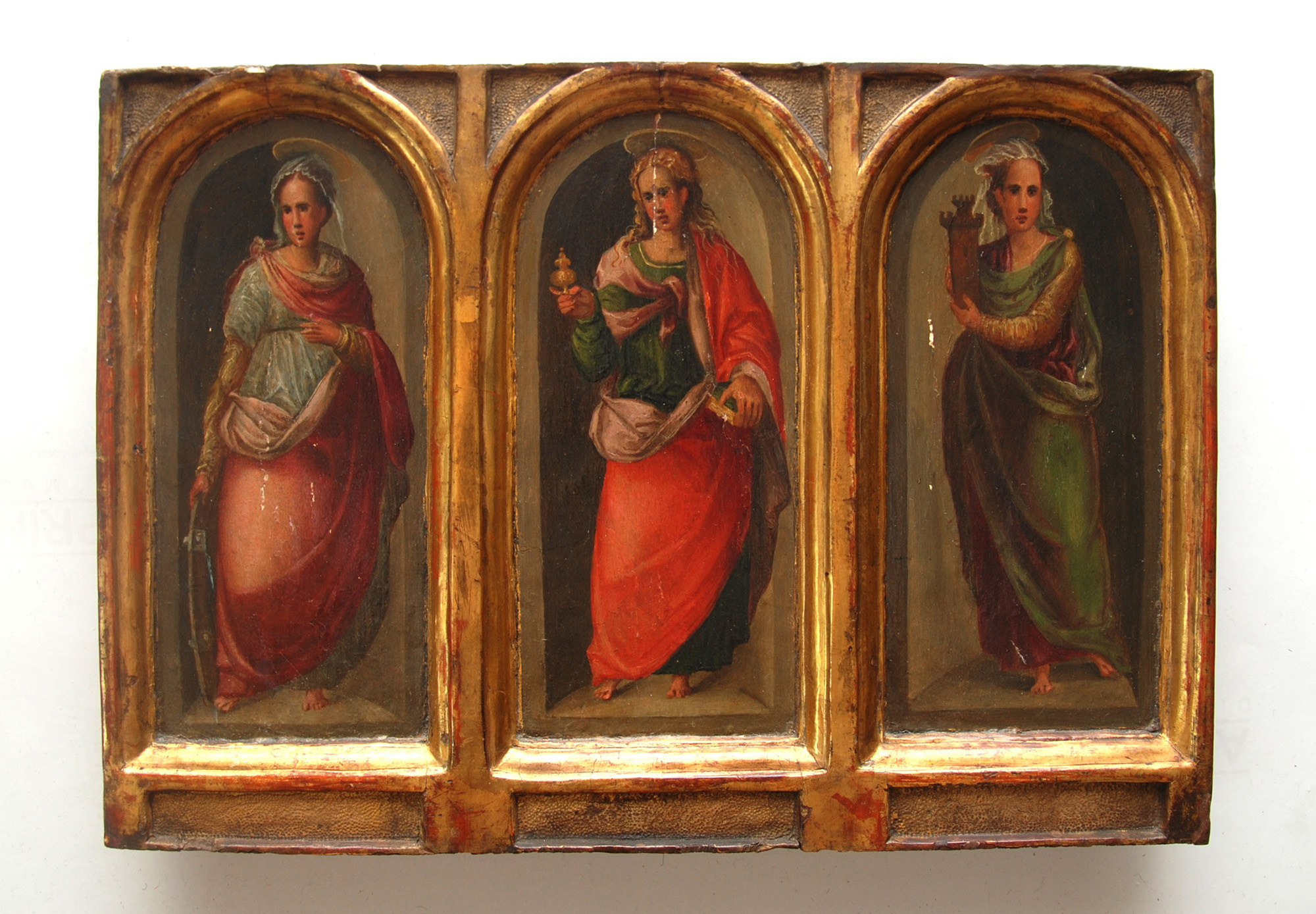 Precedente Lotto 60 Successivo Casa d'Aste Martini - C.so Cavallotti 76, 18038 Sanremo Asta 71 Sessione unica sabato 25 settembre 2021 ore 15:00 (UTC +01:00) DIPINTO dipinto su tavola raff.tre sante sec.XVI 27x39 cm