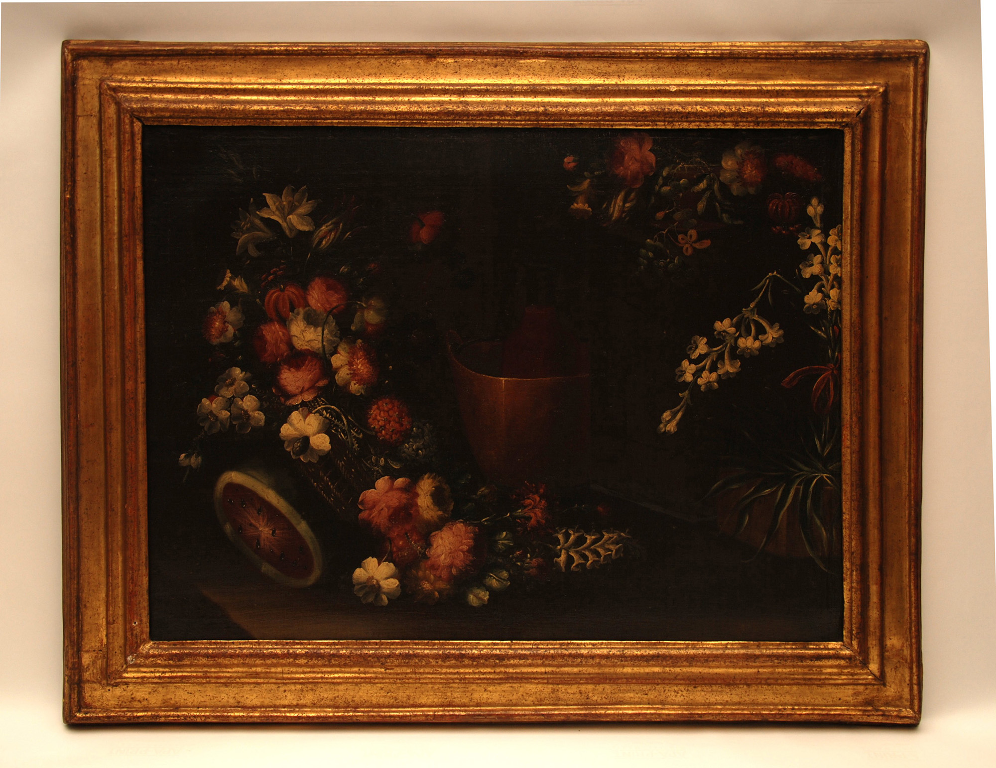 Precedente Lotto 108 Successivo Casa d'Aste Martini - C.so Cavallotti 76, 18038 Sanremo Asta 71 Sessione unica sabato 25 settembre 2021 ore 15:00 (UTC +01:00) DIPINTO olio su tela raff.natura morta sec XVII 73x99 cm