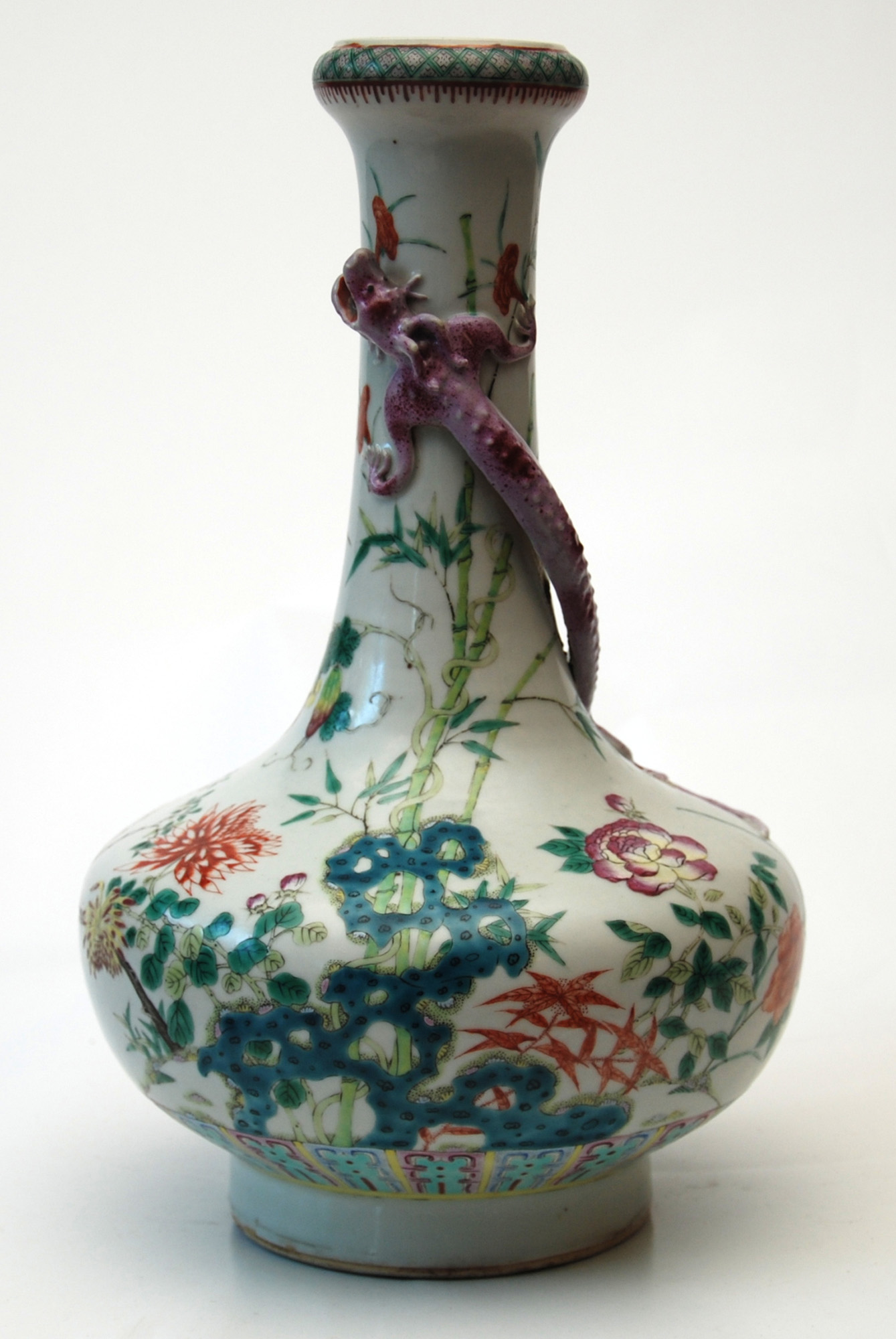 Cina vaso in porcellana decorato con motivi floreali con rettile in rilievo