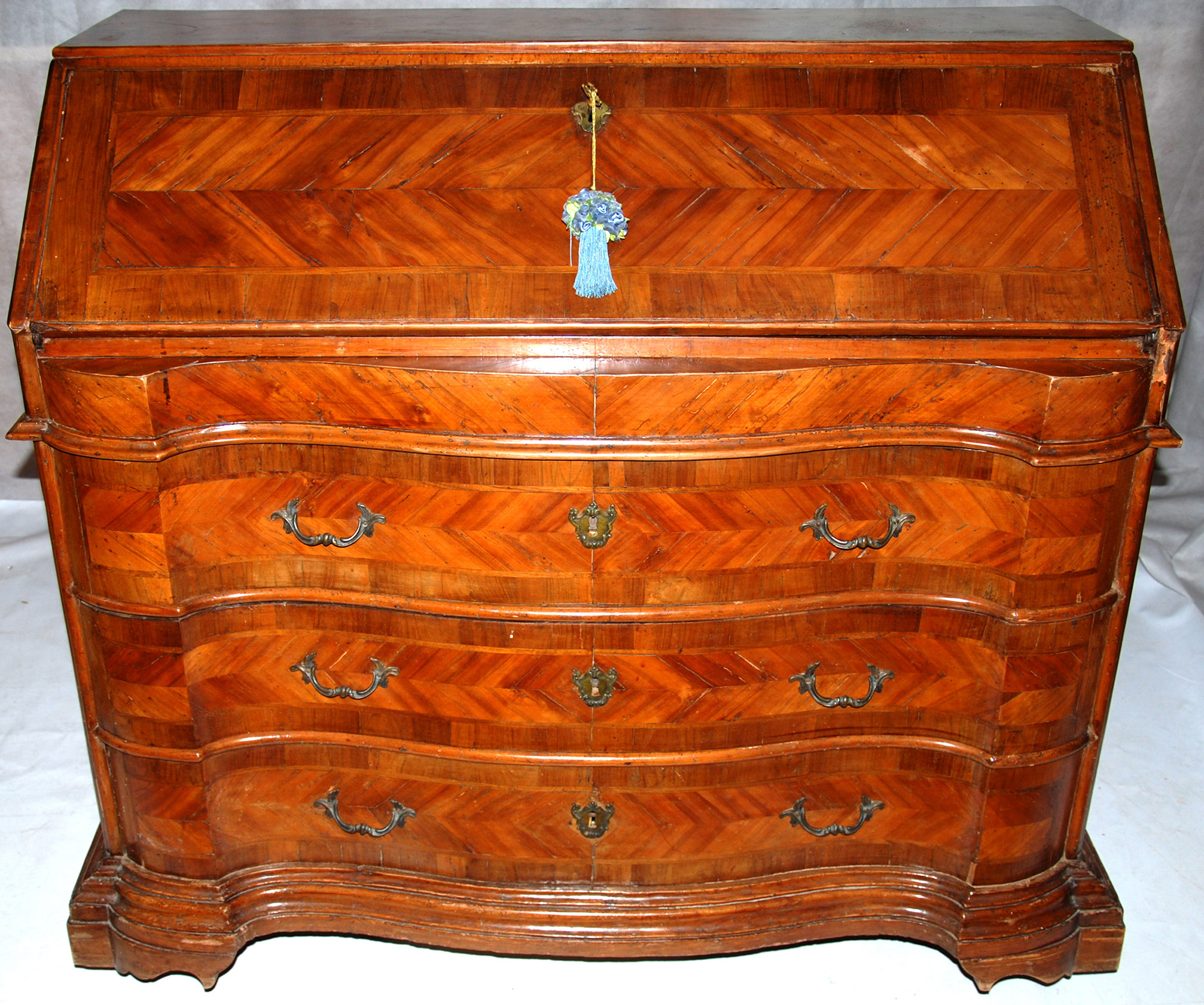 Precedente Lotto 156 Successivo Casa d'Aste Martini - C.so Cavallotti 76, 18038 Sanremo Asta 71 Sessione unica sabato 25 settembre 2021 ore 15:00 (UTC +01:00) RIBALTA ribalta con tre cassetti lastronata mossa sul fronte sec.XVIIIcm. 124x60 h. 108