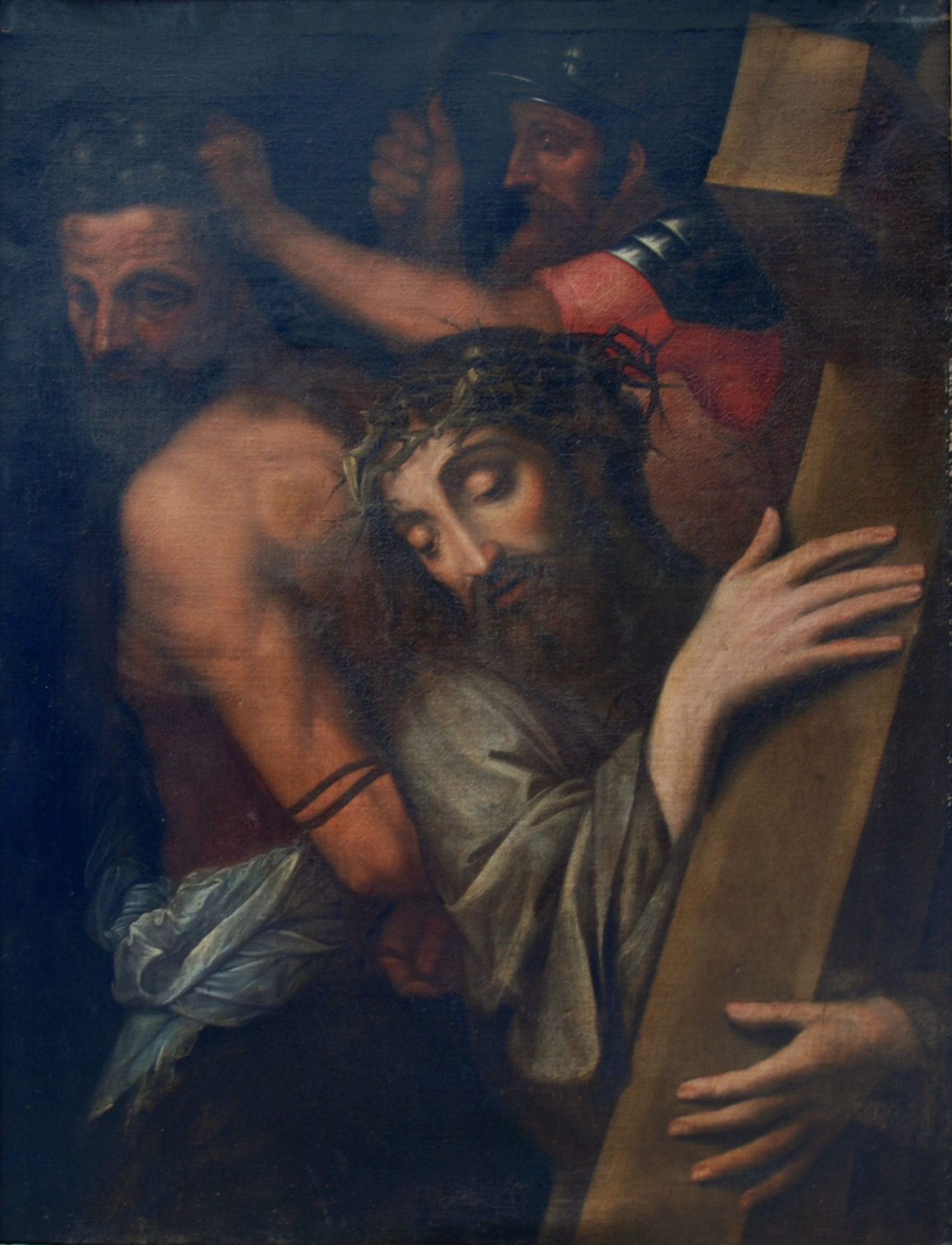 Michiel Van Coxcie alla maniera di olio su tela 'Cristo portacroce' sec.XVII 116x89 cm