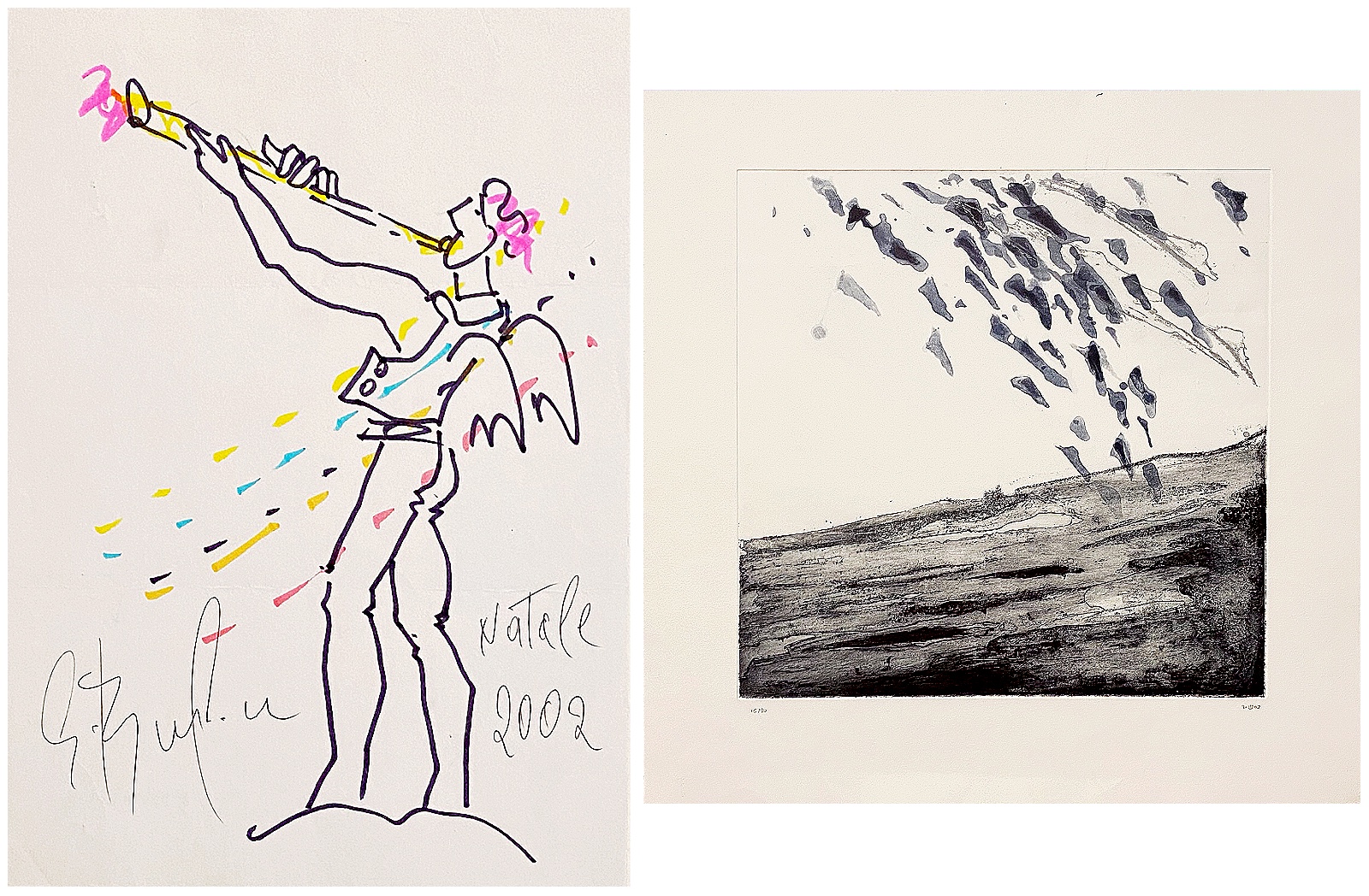Immagine a dx: Autore anonimo, Senza titolo, anno non dichiarato, incisione acquatinta es. 16/20, cm 60x60, tiratura in basso a sx, firma in basso a dx (non decifrata). Provenienza: Avanguardie milanesi 1960-1980, dalla collezione privata di Franco Passoni (MI).