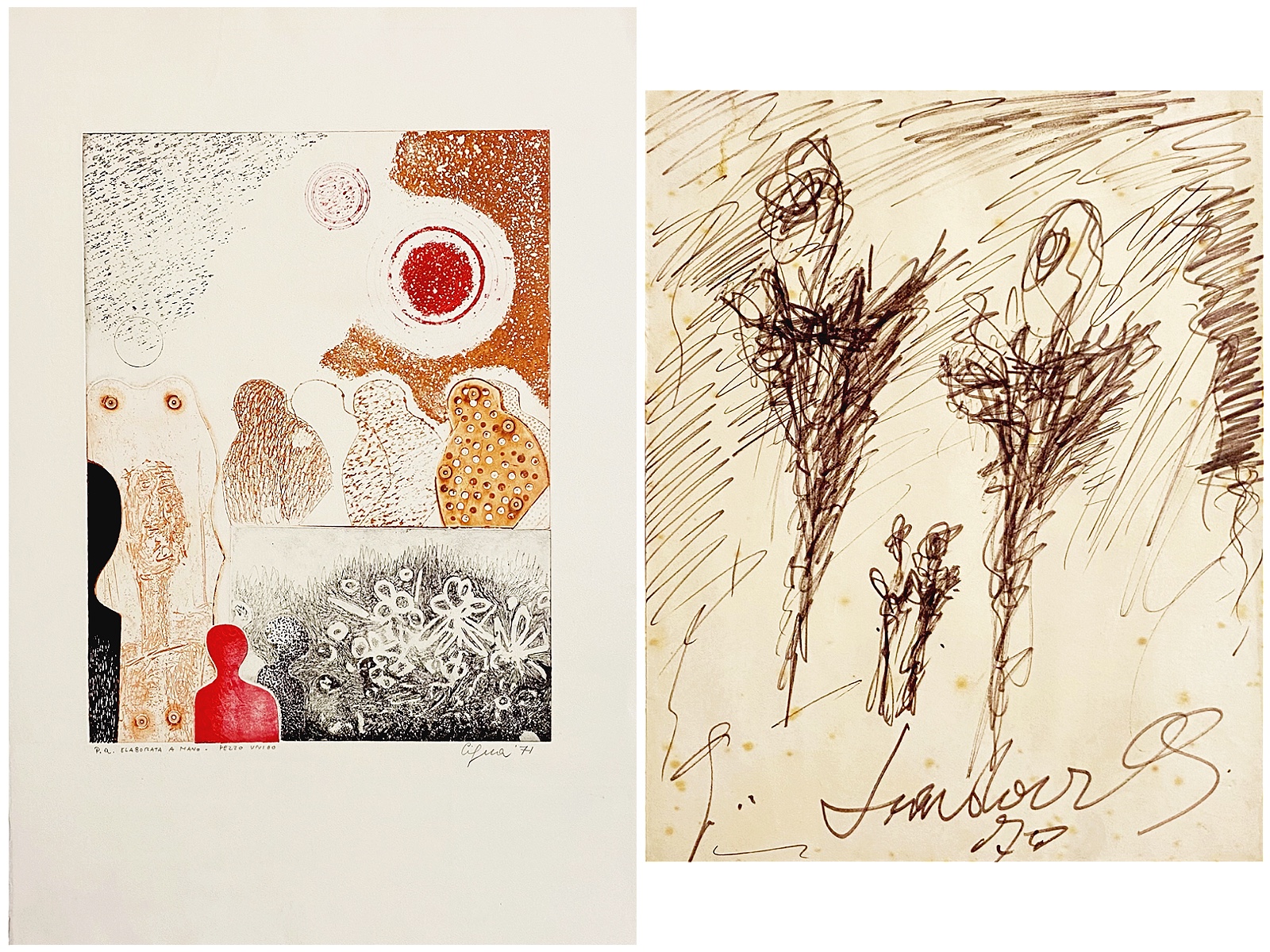 Immagine a sx: Cigna Giorgio, Senza titolo, 1971, incisione acquaforte es. pa elaborata a mano pu, cm 51x31, tiratura, firma e anno in basso.
