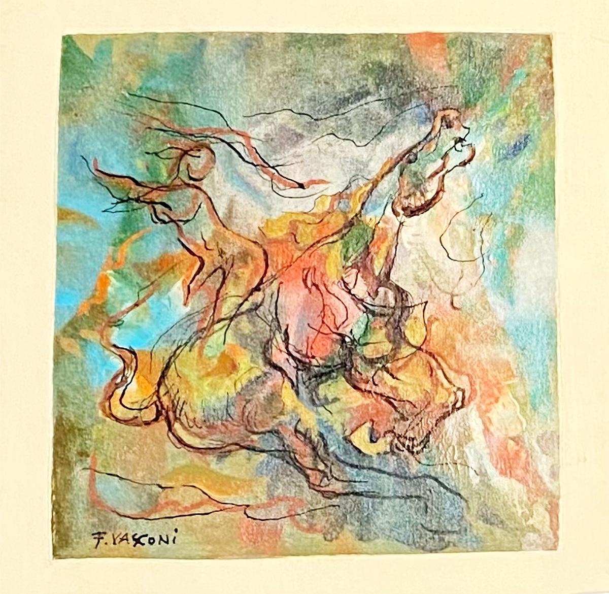 VASCONI FRANCO Spigno Monferrato (AL) 1920 Cavaliere 2007 Olio su cartone...