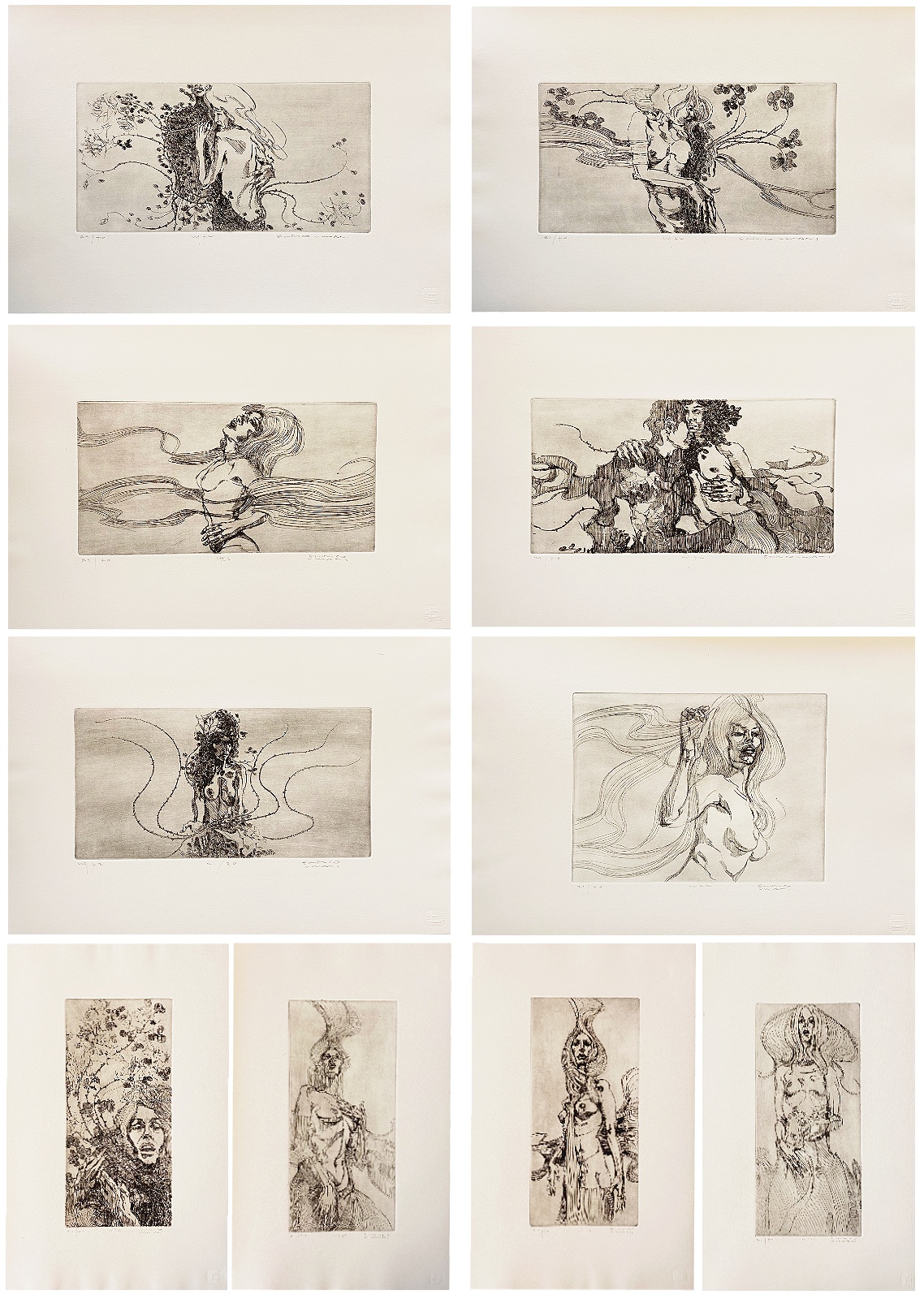 Cartella con dieci acqueforti originali es. 21/70, tiratura e firma in basso.