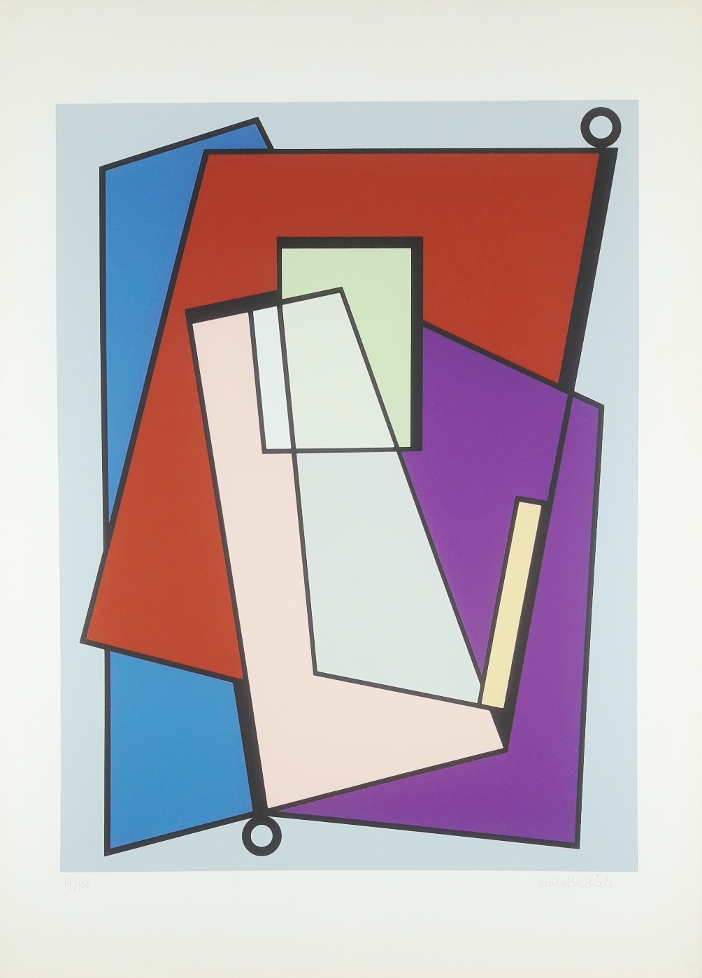 BADIALI CARLA Novedrate 1907-Como 1992“Senza titolo” serigrafia su cartoncino cm 69x49. Firmata a matita sul fronte in basso a destra, tiratura 19/100 in basso a sinistra (lieve abrasione sul bordo del cartoncino, stampa perfetta).