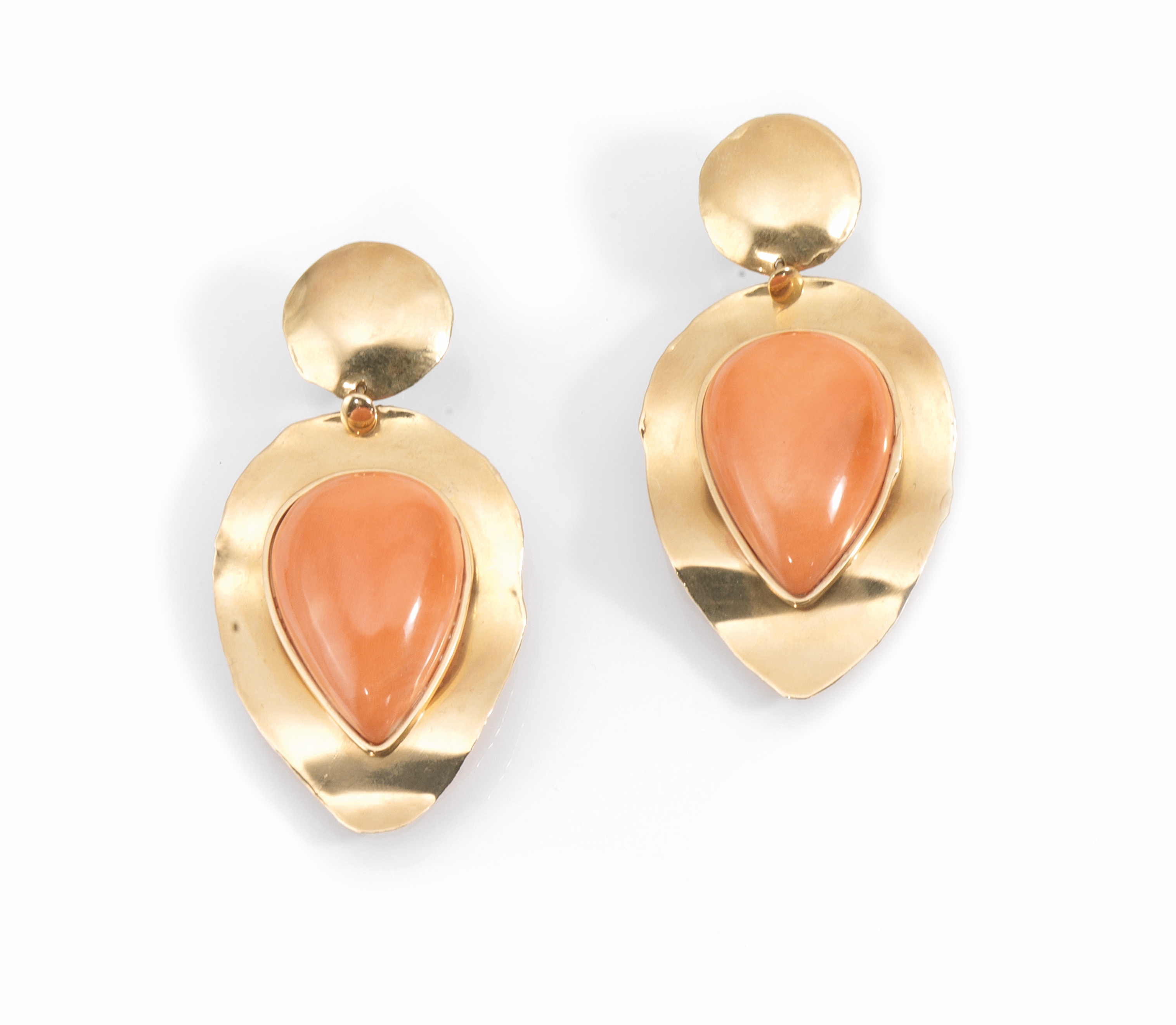 a goccia analogamente lavorato centrato da un corallo a goccia cabochon, g 42