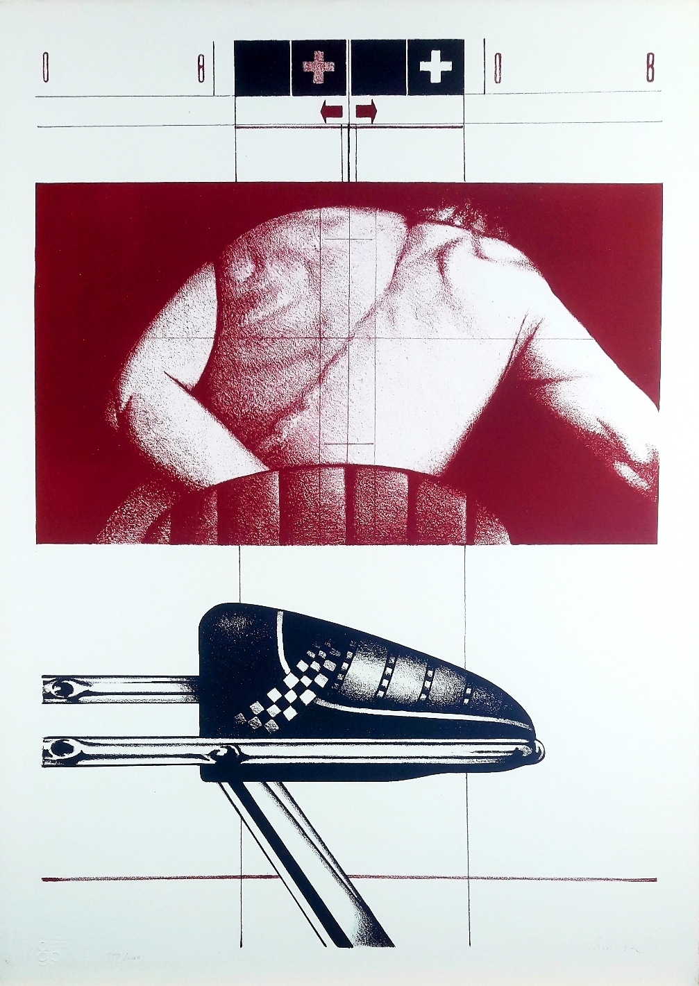 SARRI SERGIO Torino 1938 “Senza titolo” serigrafia su cartoncino cm 50x70. Firmata, datata e timbrata a secco sul fronte in basso a destra, tiratura 179 di 200 e timbro a secco in basso a sinistra