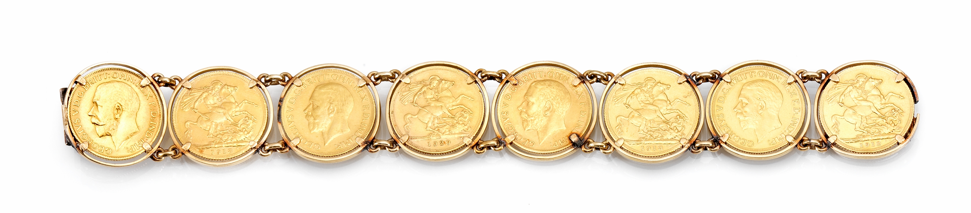 Bracciale in oro giallorealizzato con otto monete sterline montate entro...