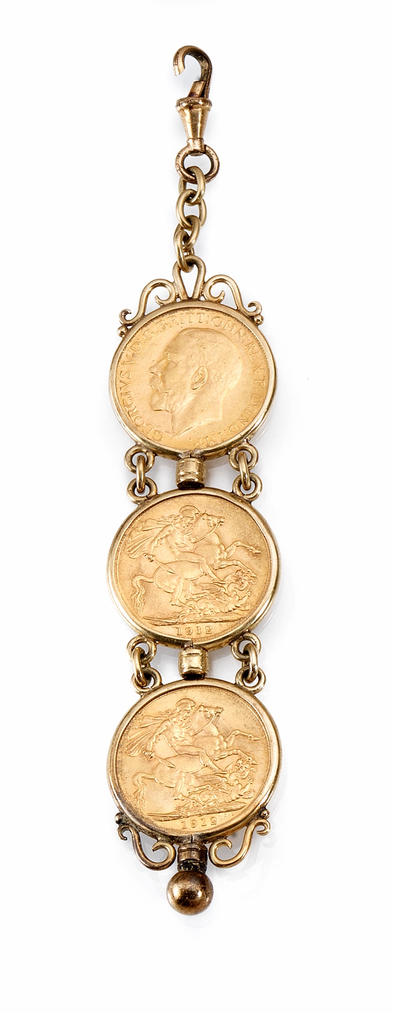 reallizzato con tre monete sterline montate in linea in oro giallo, g 33