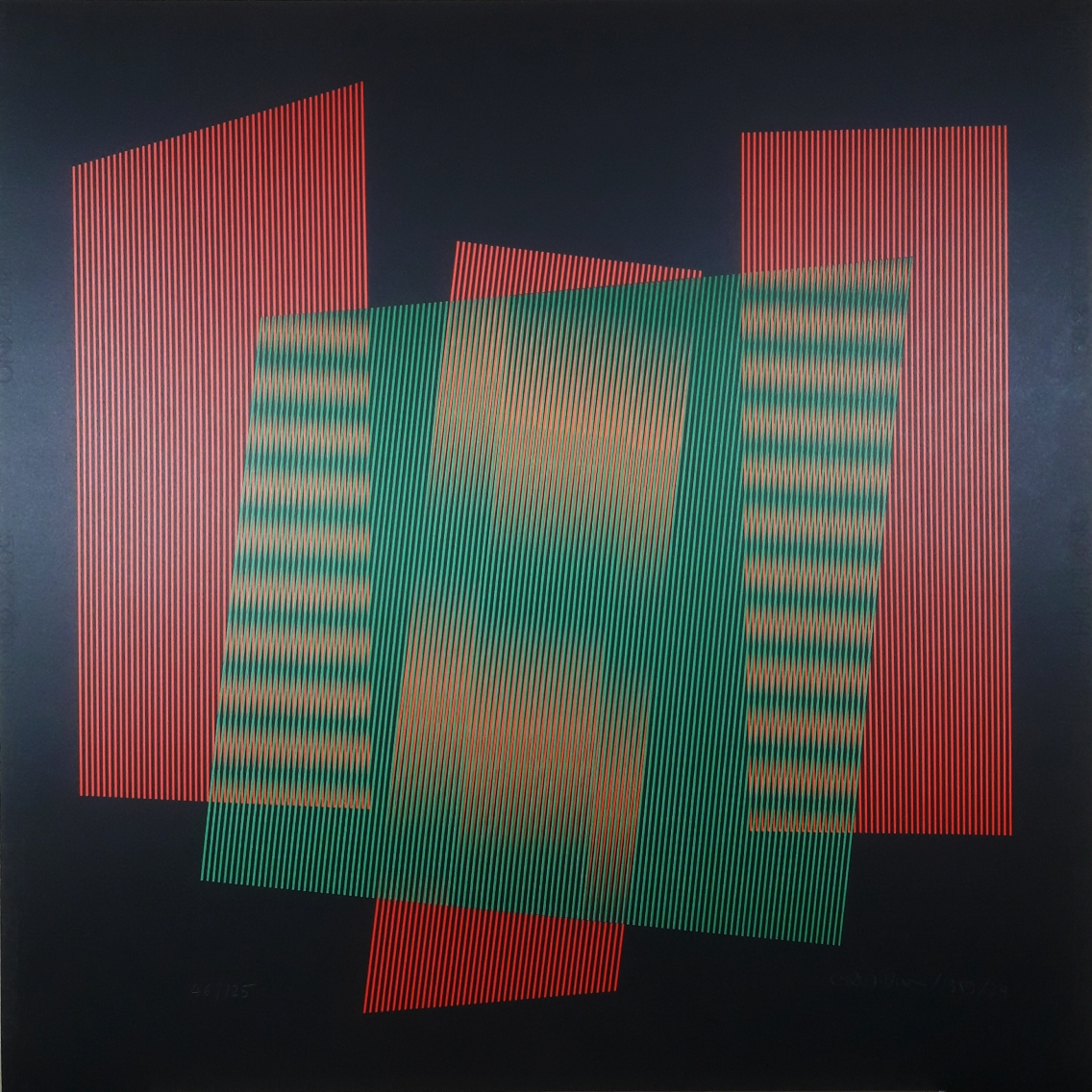 CARLOS CRUZ DIAZ Caracas 1923-Parigi 2019 “Senza titolo” serigrafia su cartone Fabriano cm 68x68 del 1959/84. Firmata e datata a matita sul fronte in basso a destra, tiratura 46/125 a sinistra. Facente parte della Cartella “Exacta- dal costruttivismo all’arte sistematica 1918-1885” edita da Squatriti per Galleria Fumagalli.