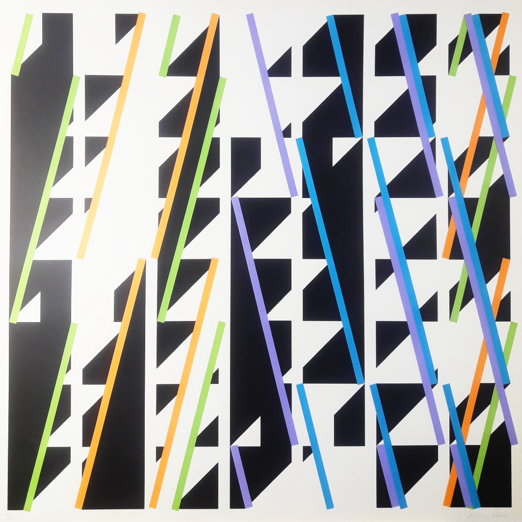 STEELE JEFFREY Cardiff 1931 “Senza titolo” serigrafia su cartone Fabriano cm 68x68. Firmata sul fronte in basso a destra, tiratura 46/125 a sinistra. Facente parte della Cartella “Exacta- dal costruttivismo all’arte sistematica 1918-1885” edita da Squatriti per Galleria Fumagalli.