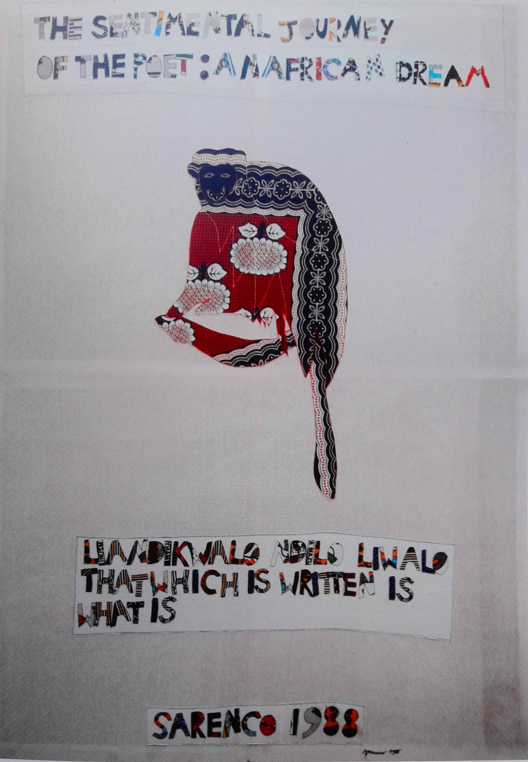 SARENCO (ISAIA MABELLINI) Brescia 1945-2017 “The sentimental Journery of the poet” patchwork su tela cm 310x220 del 1988. Firmato e datato sul fronte in basso a destra. Opera pubblicata a pag.159 del catalogo ragionato Volume I “Achille Bonito Oliva”.