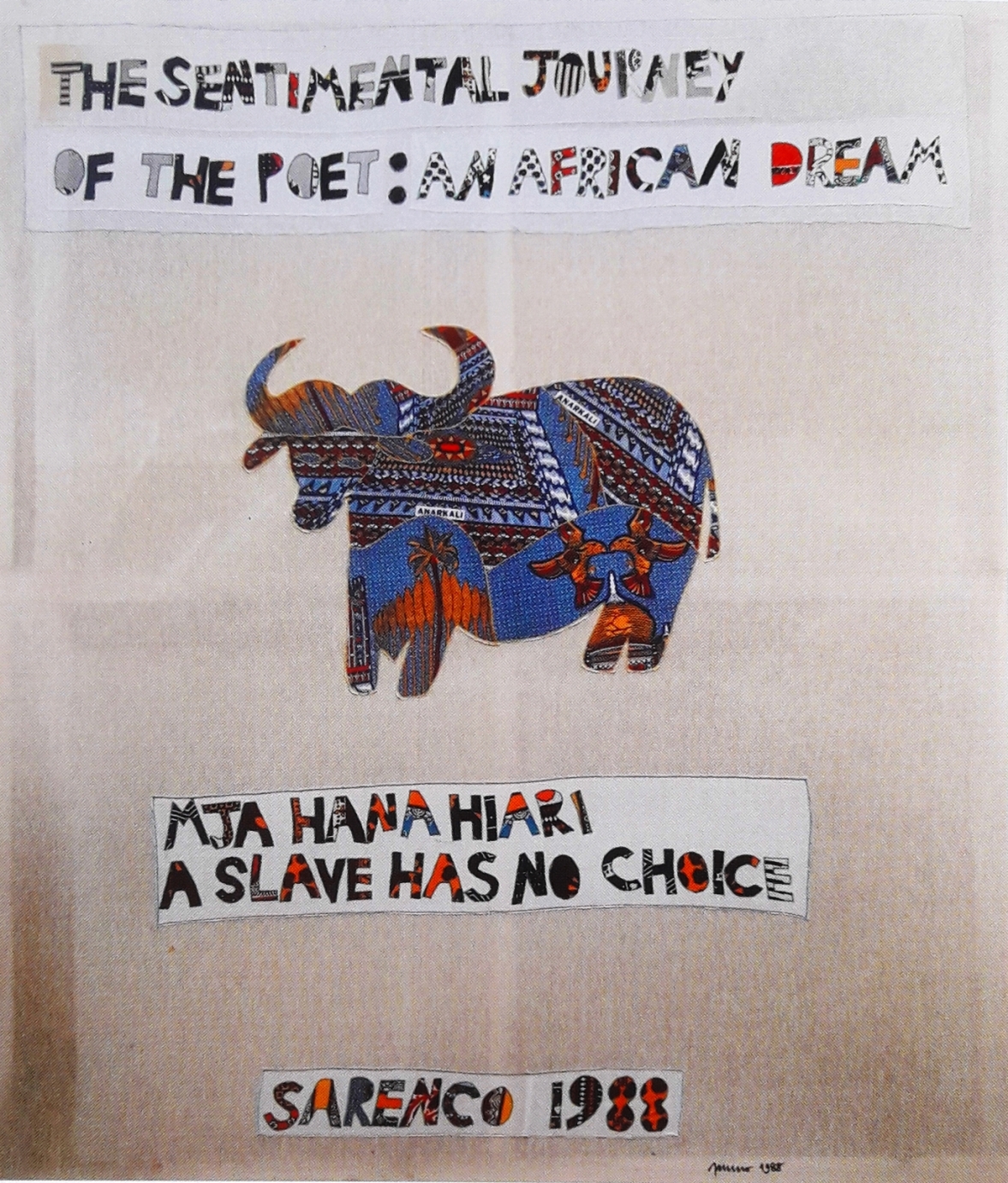 SARENCO (ISAIA MABELLINI) Brescia 1945-2017 “The sentimental Journery of the poet” patchwork su tela cm 310x220 del 1988. Firmato e datato sul fronte in basso a destra. Opera pubblicata a pag.160 del catalogo ragionato Volume I “Achille Bonito Oliva” e su “Art in Italy 34” a pag.13.