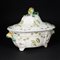 Zuppiera con coperchio in maiolica bianca. Corpo ovale dipinto nei toni...