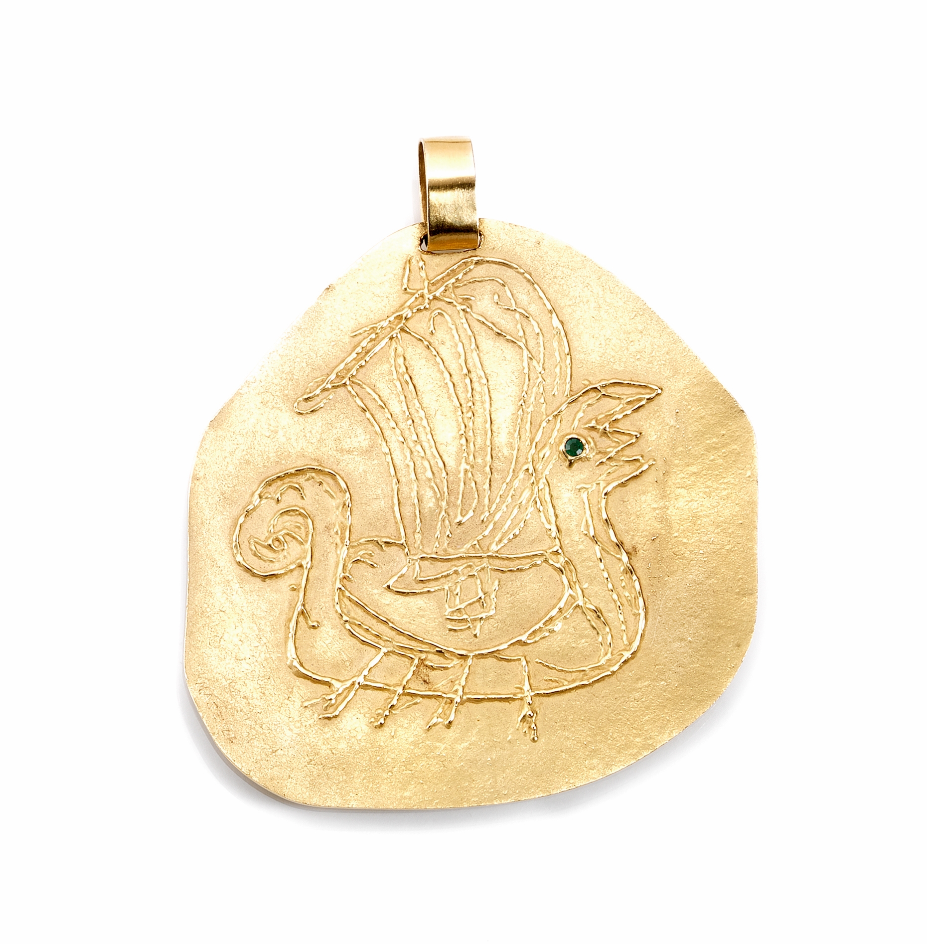 Pendente in oro giallo, Masenza, anni '70, in oro giallodi forma sagomata, in...