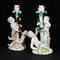 Coppia di candelieri in porcellana bianca e policroma modellati a raffigurare...