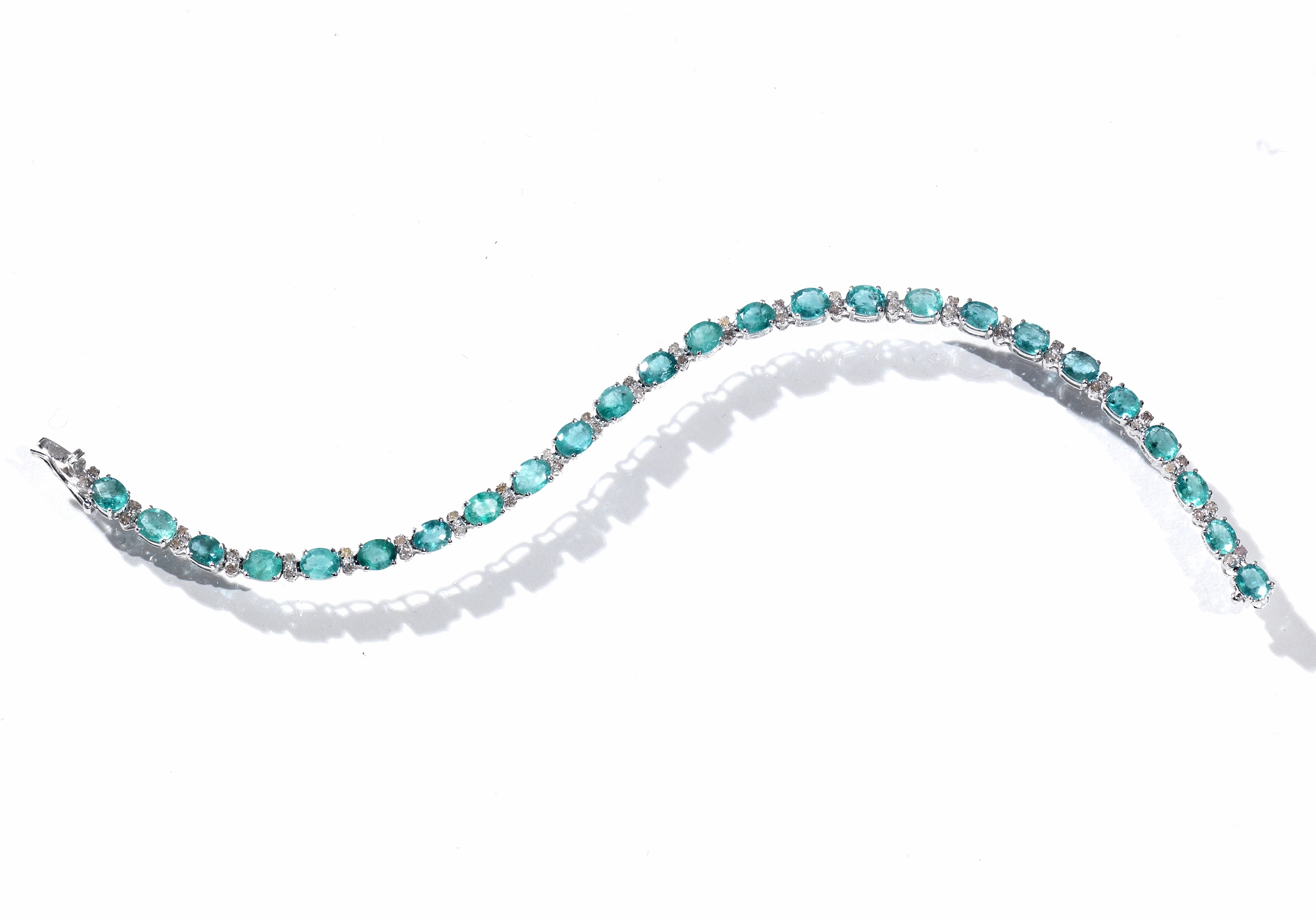 Bracciale in oro bianco, smeraldi e diamanti