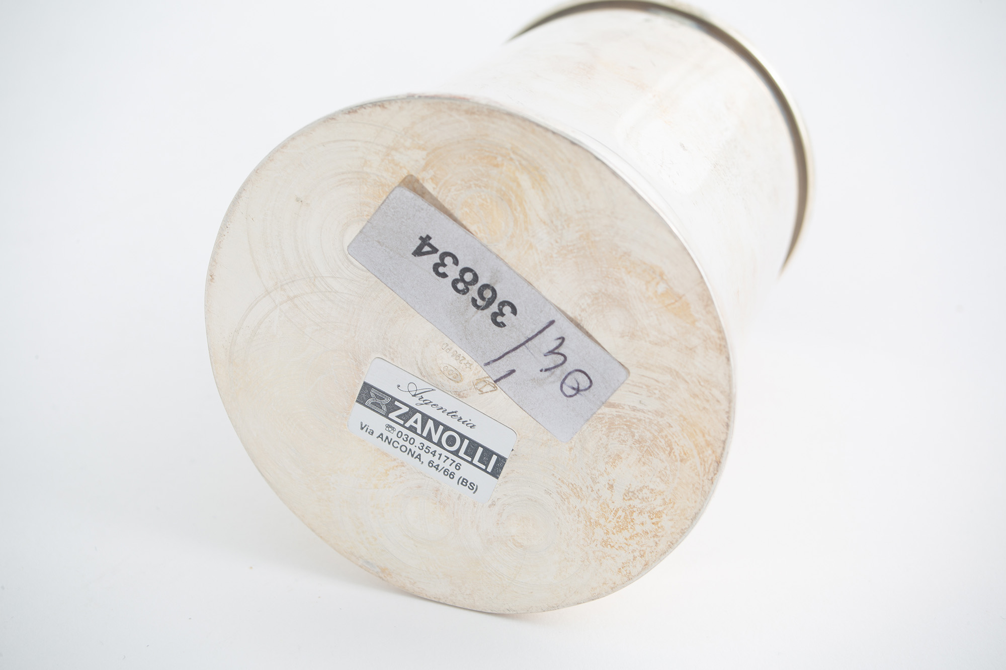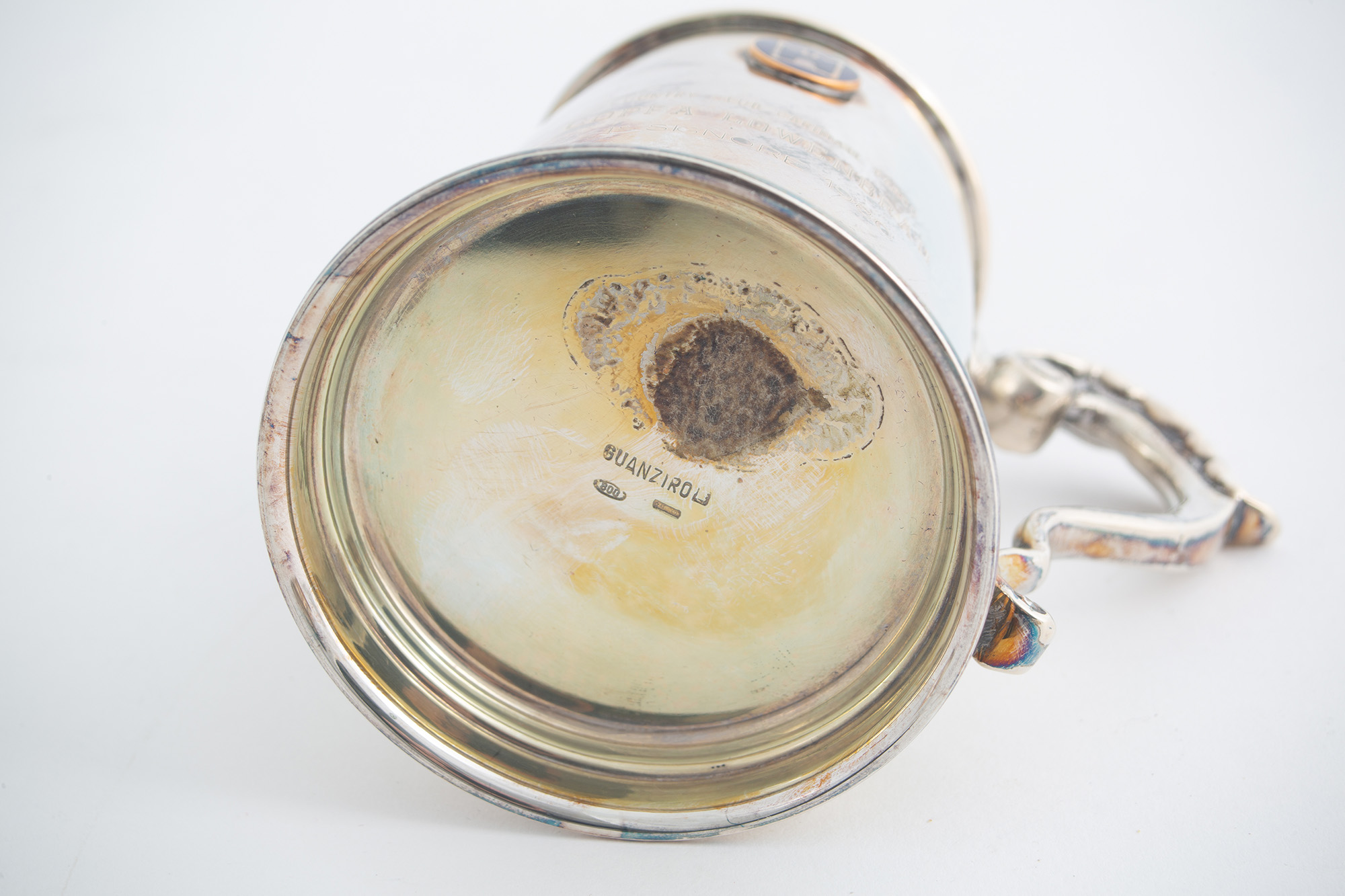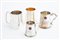 Quattro piccoli boccali in argento 800, gr. 380 ca. complessivi. Punzoni sul fondo. XX secolo.
