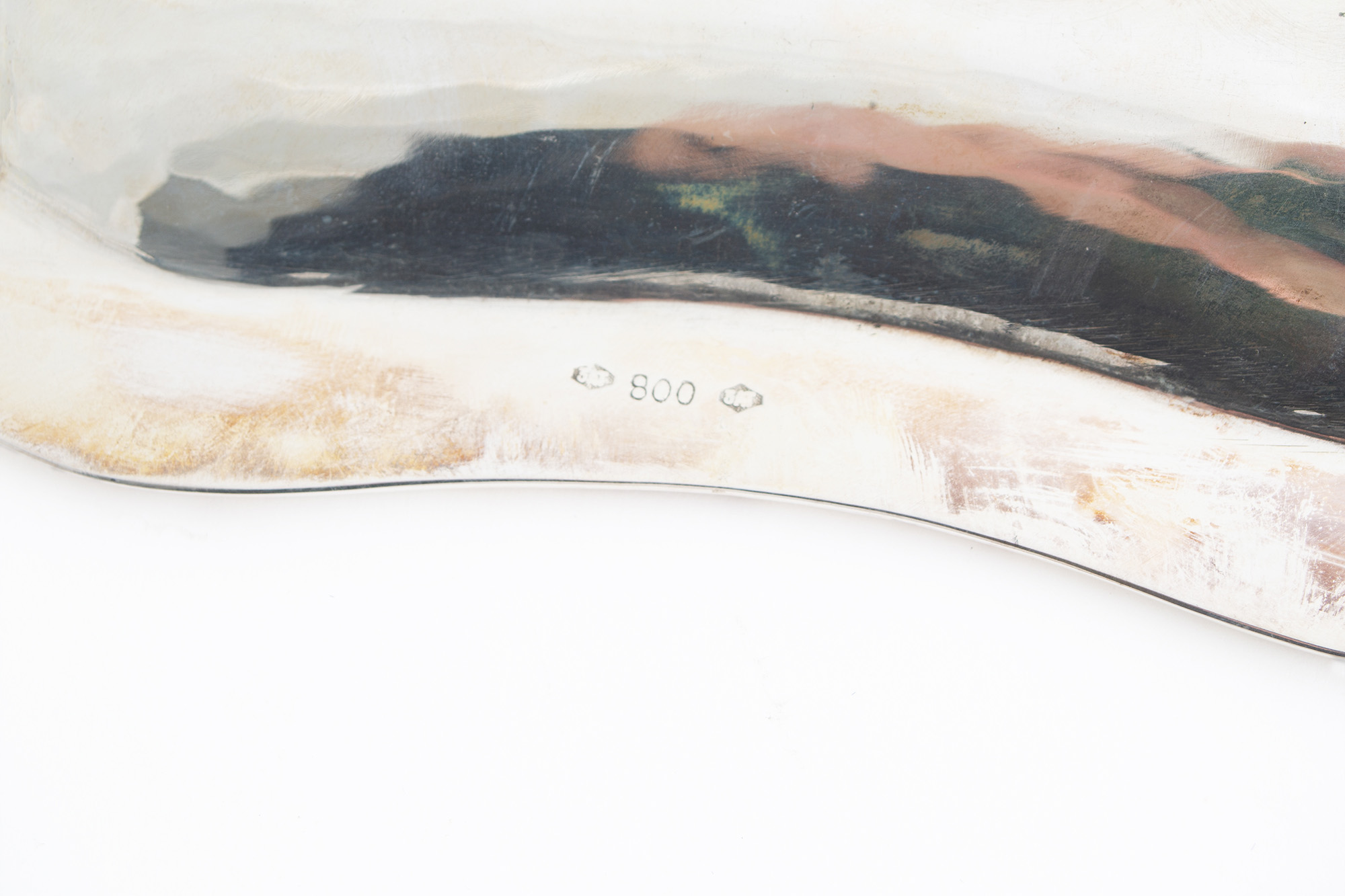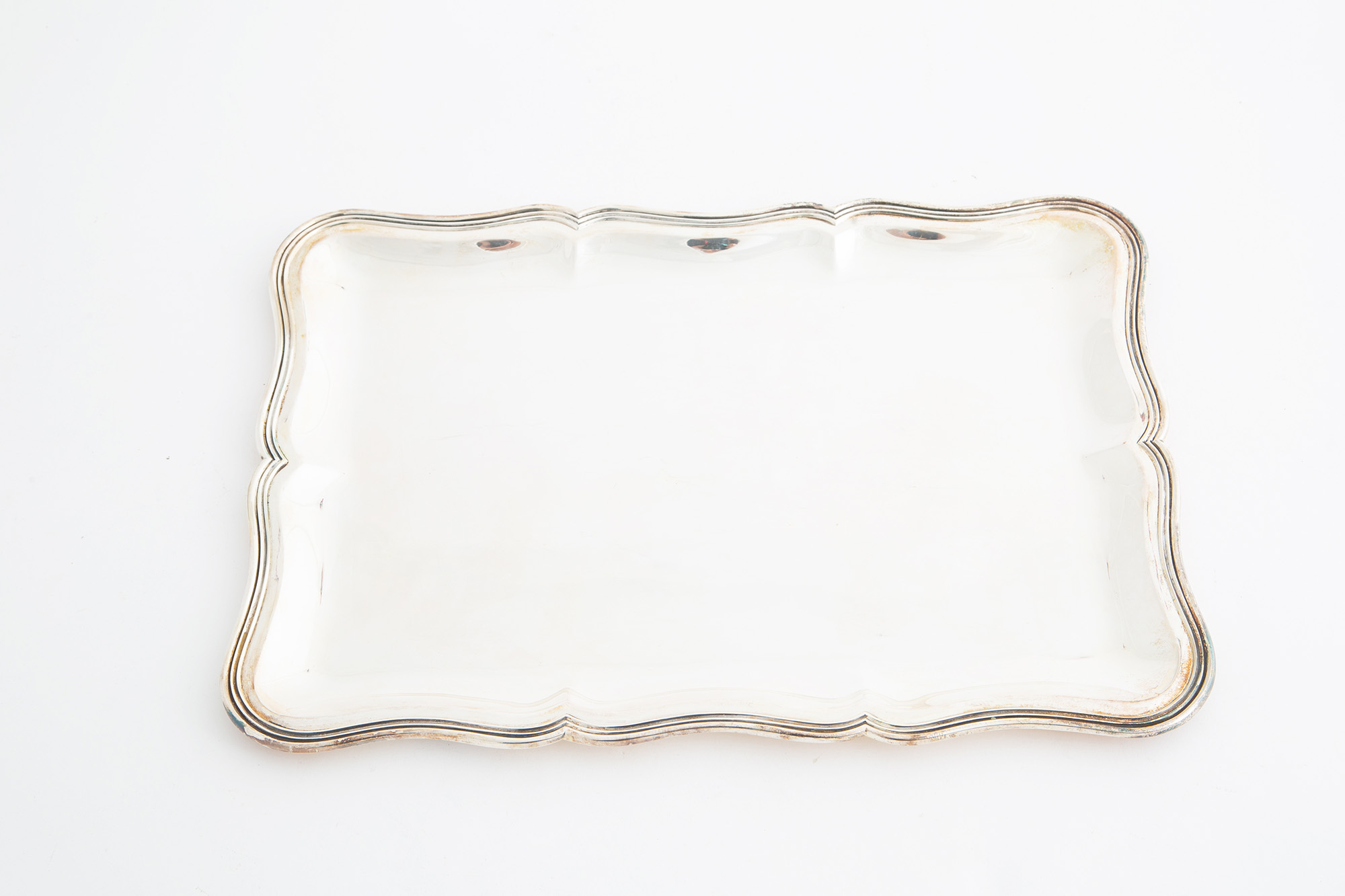 Vassoio rettangolare con bordo polilobato in argento 800, gr. 1125 ca. XX secolo.
