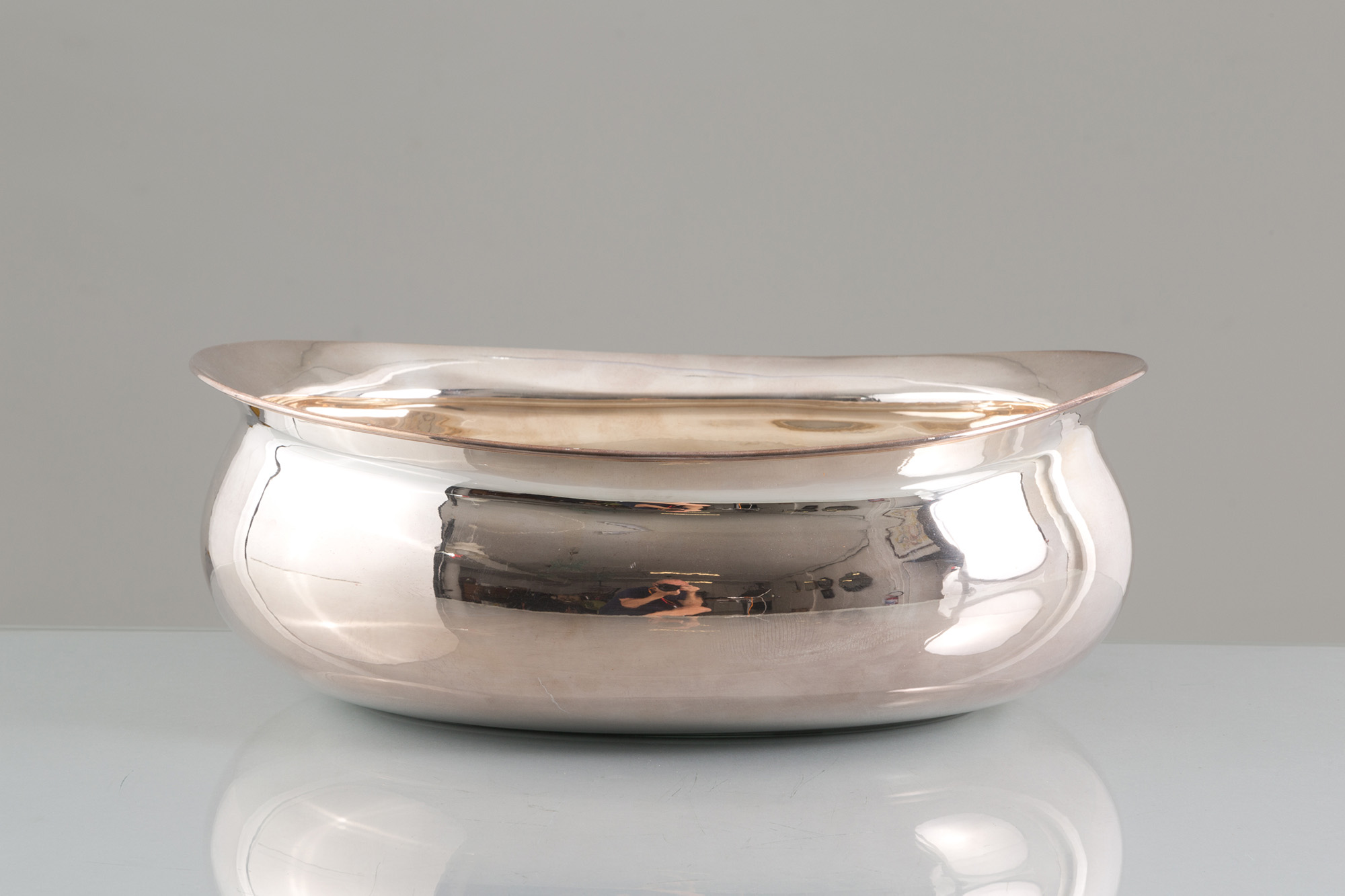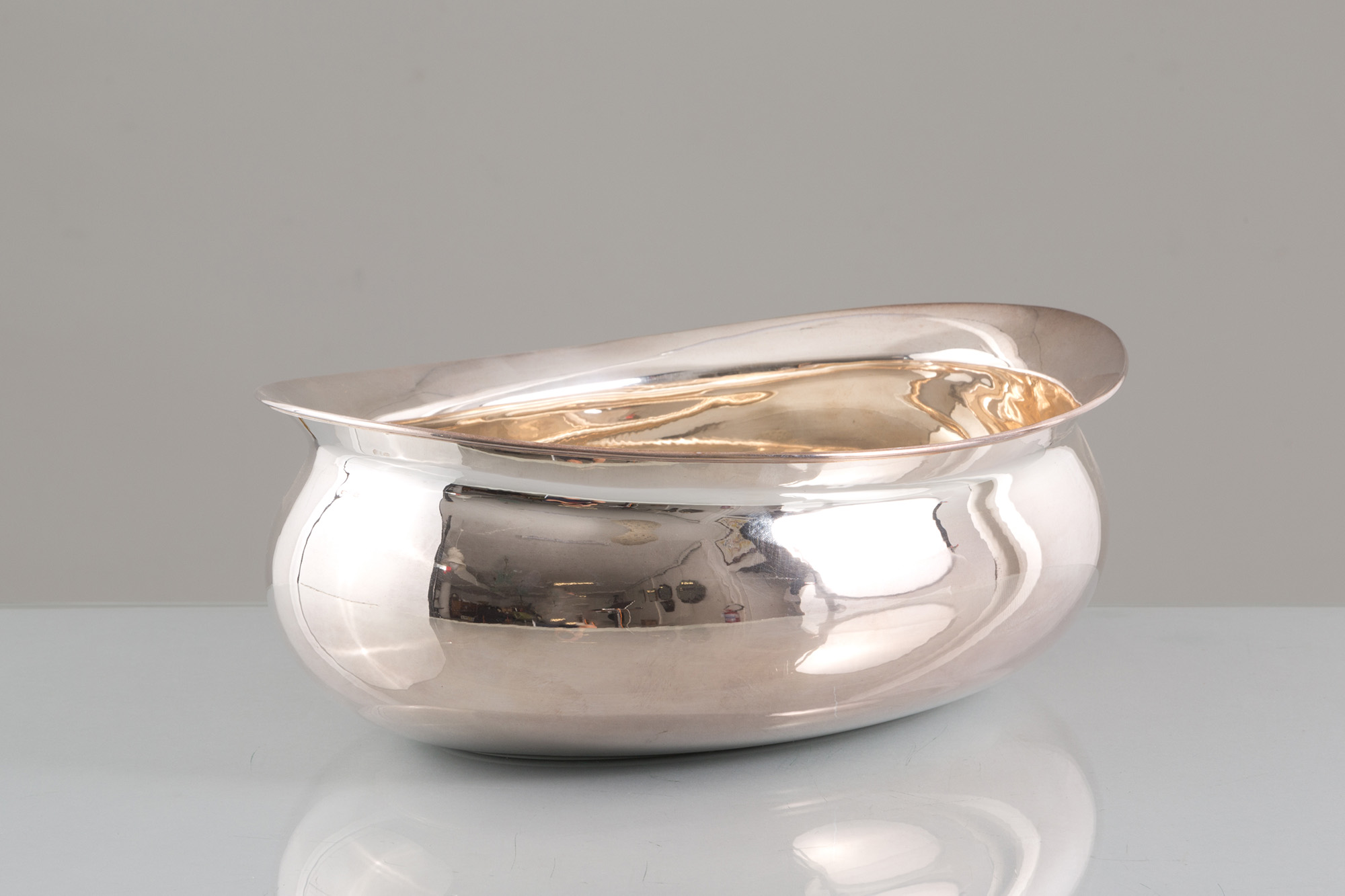 Ciotola ovale in argento 800, gr. 835 ca. XX secolo. Mis. Lung. cm. 33 Alt. cm. 11 Prof. cm. 24.5 ca.
