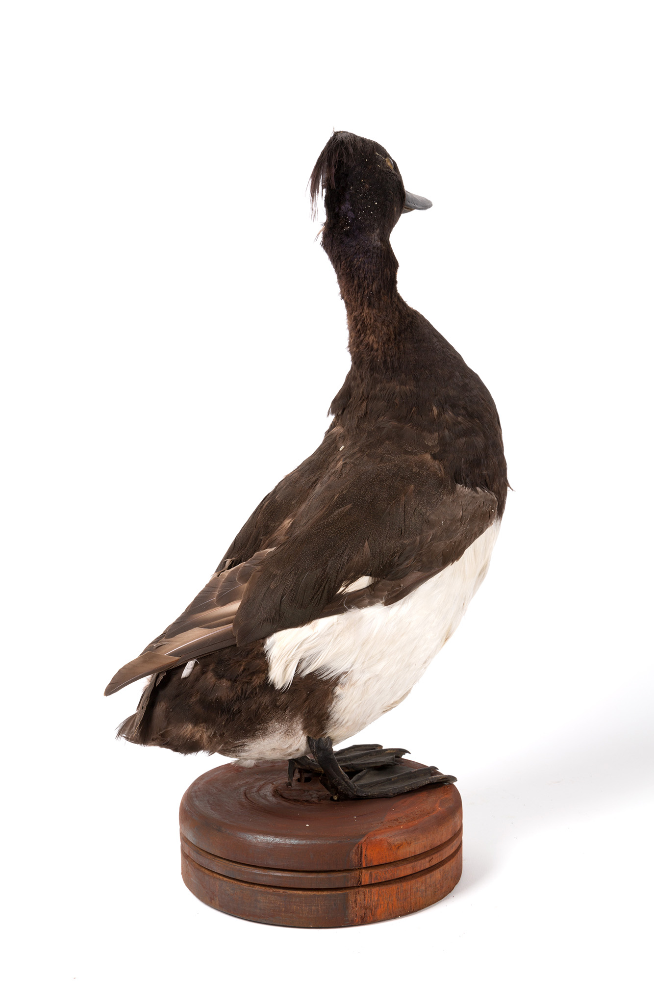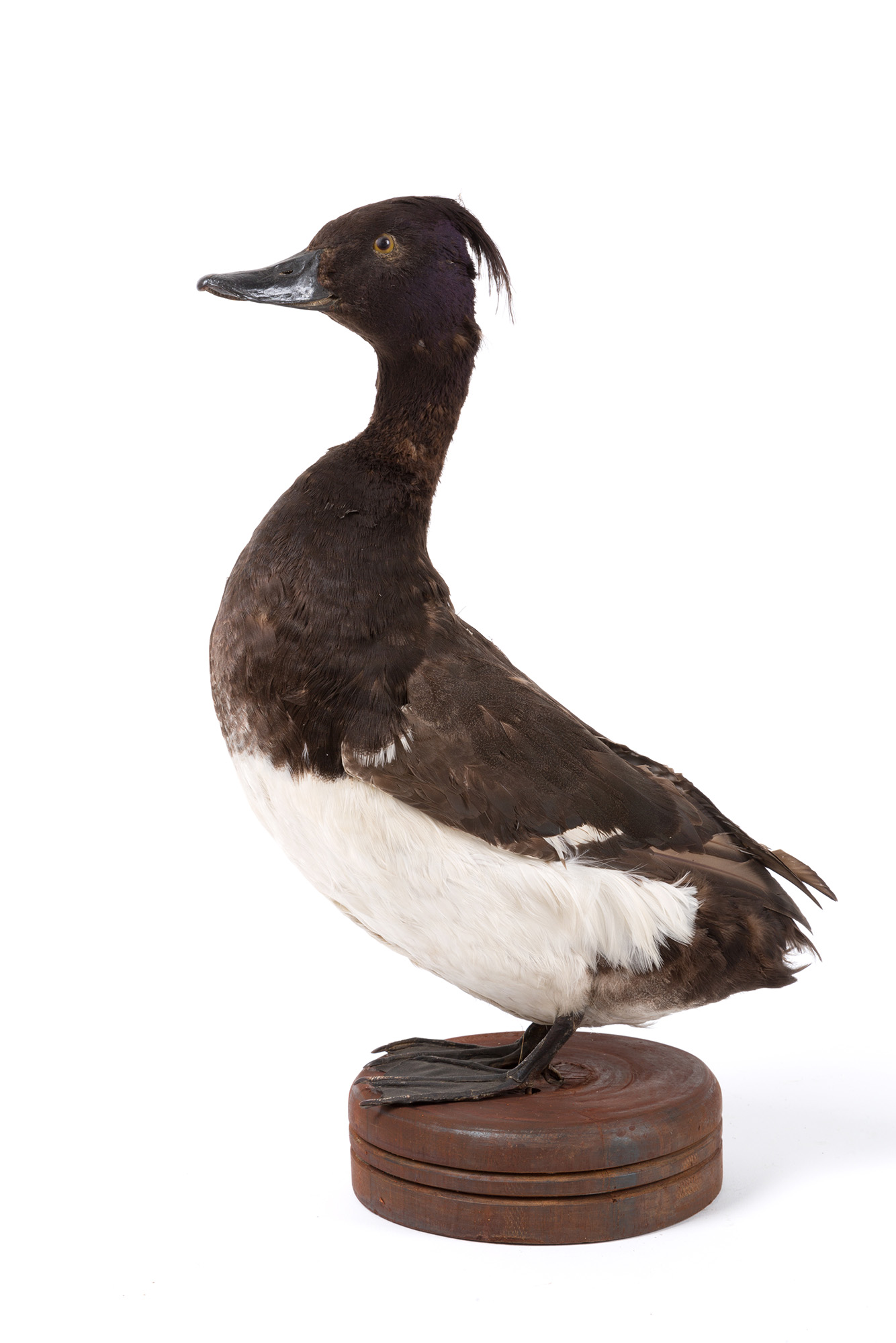 Moretta (Aythya fuligula) tassidermizzata. Mis. Lung. cm. 26 Alt. cm. 36 Prof. cm. 12 ca.