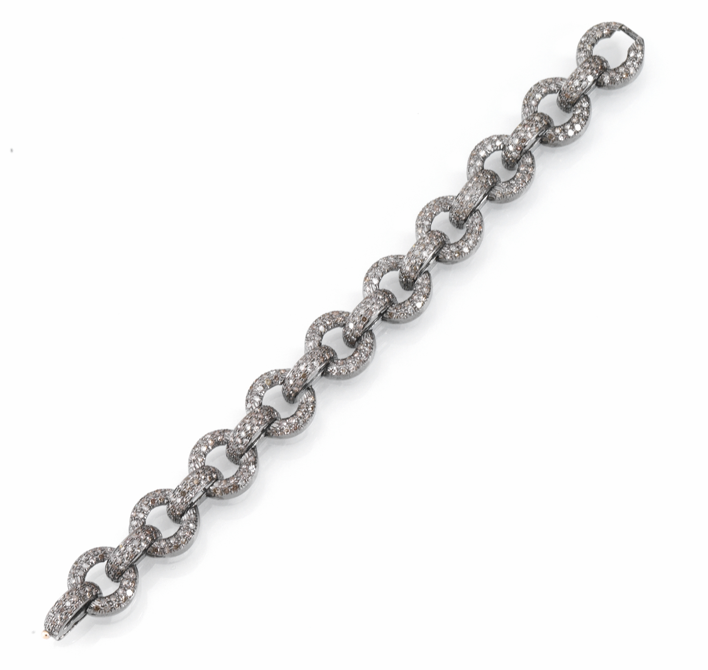 realizzato ad una fila di maglie ad anello e semianello decorate in pavè di brillanti per ct 6,75, g 31