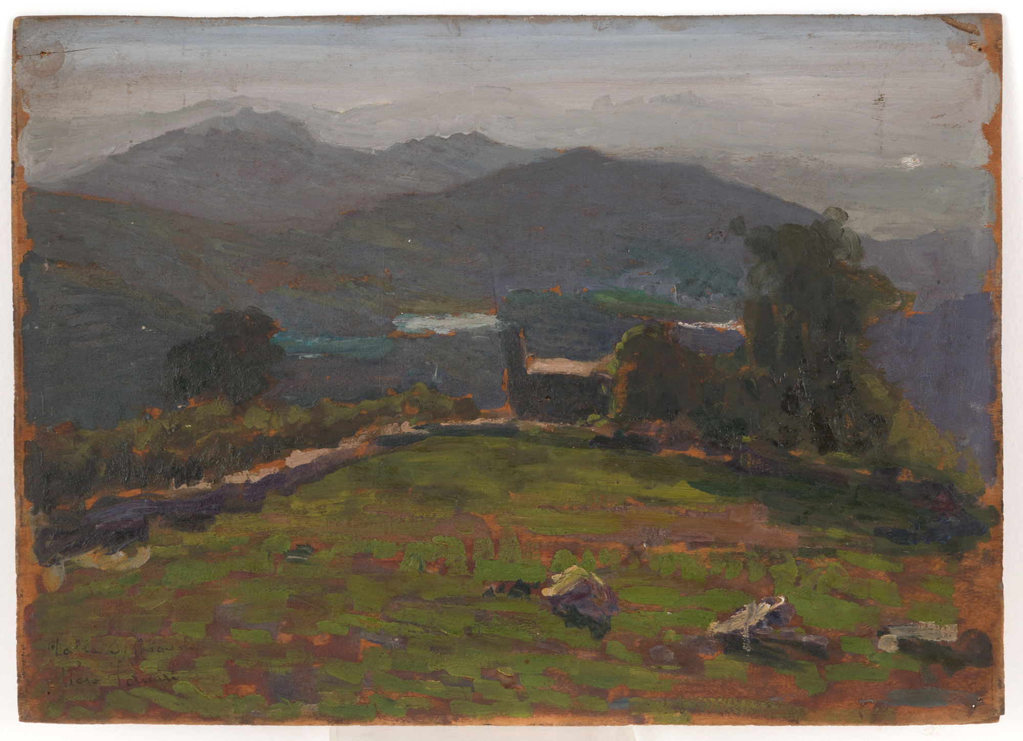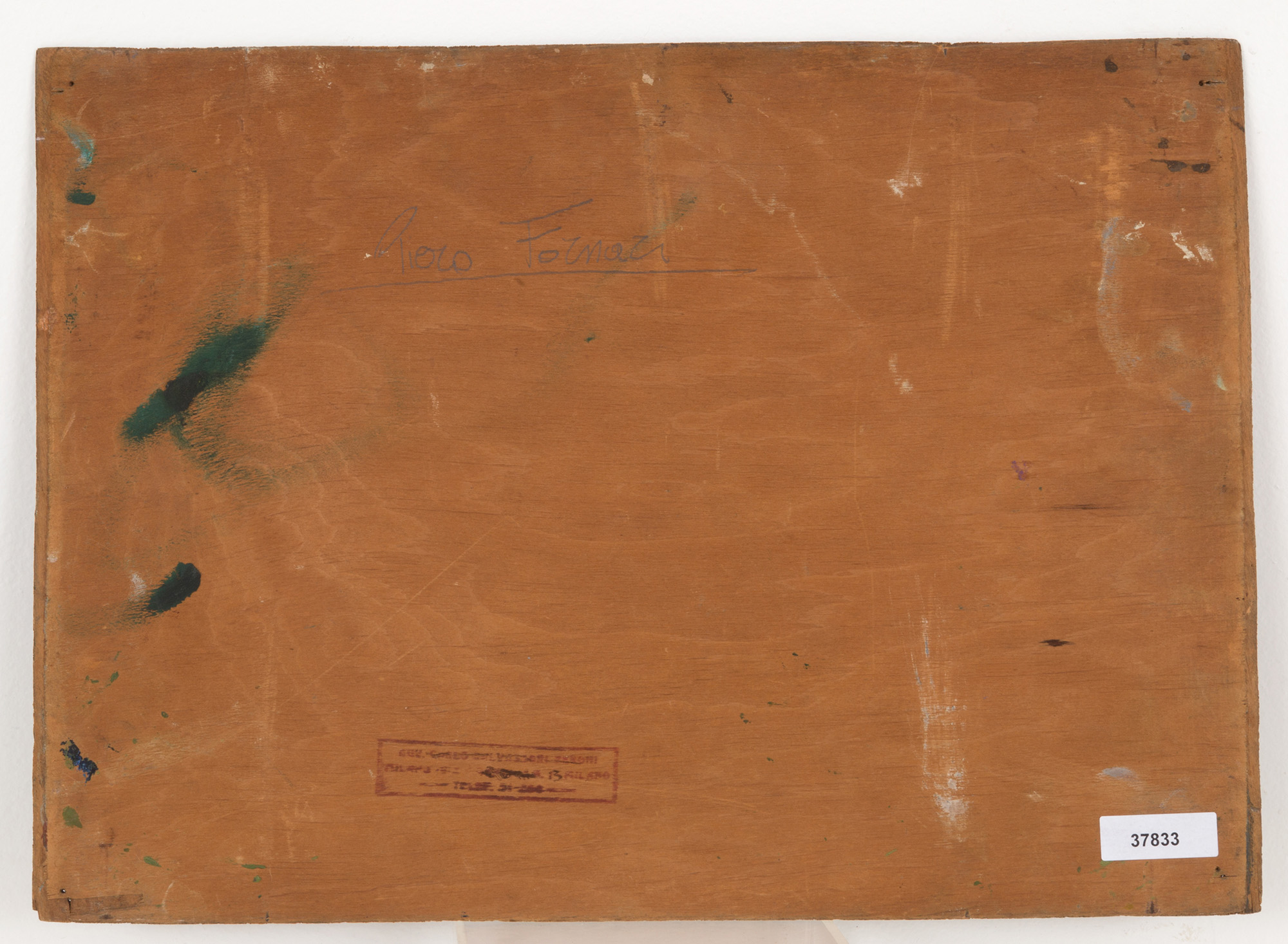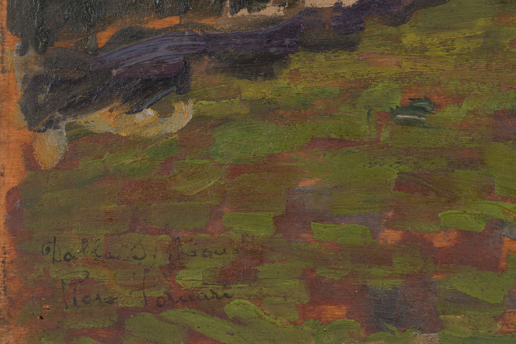 PIERO FORNARI (Civitavecchia, 1892 - Milano, 1958). Dipinto olio su compensato raff. ''VEDUTA CAMPESTRE''. Firmato in basso a sinistra. Mis. Lung. cm. 39 Alt. cm. 28 ca.