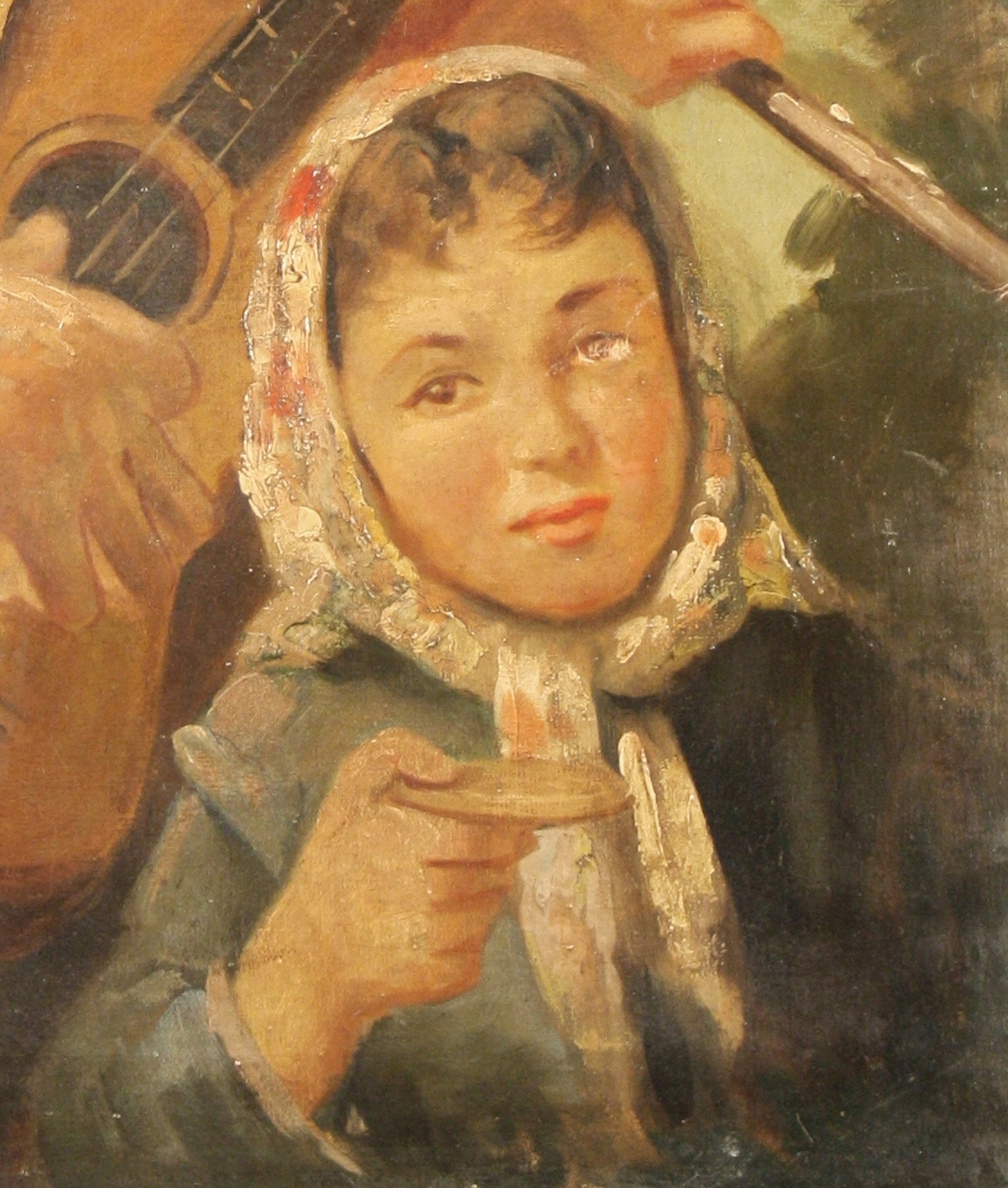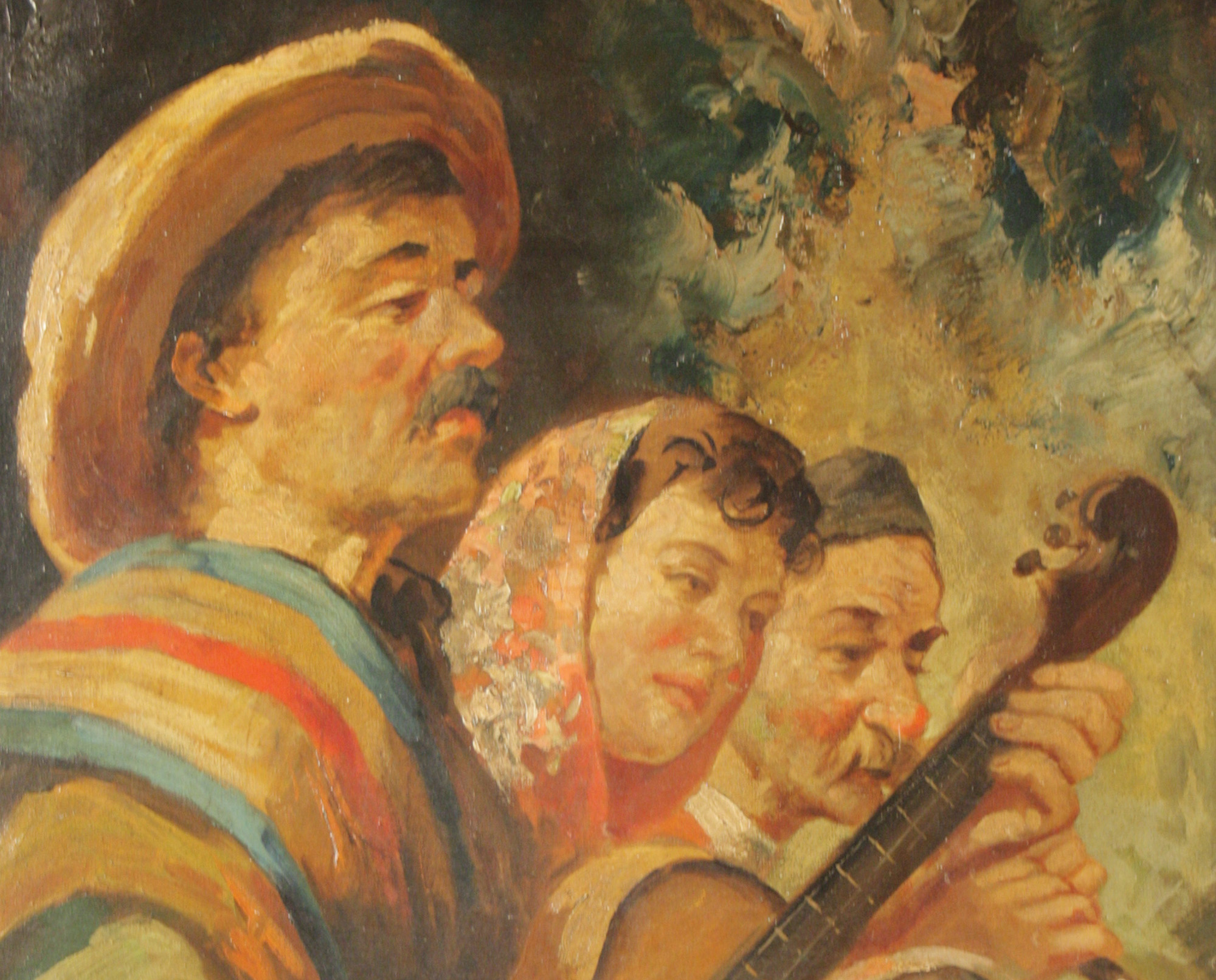 ALBERTO CECCONI (Firenze, 1897-1973). Dipinto olio su tela raff. ''SUONATORI DI STRADA''. Firmato in basso a sinistra. Mis. Lung. cm. 60 Alt. cm. 80 ca.
