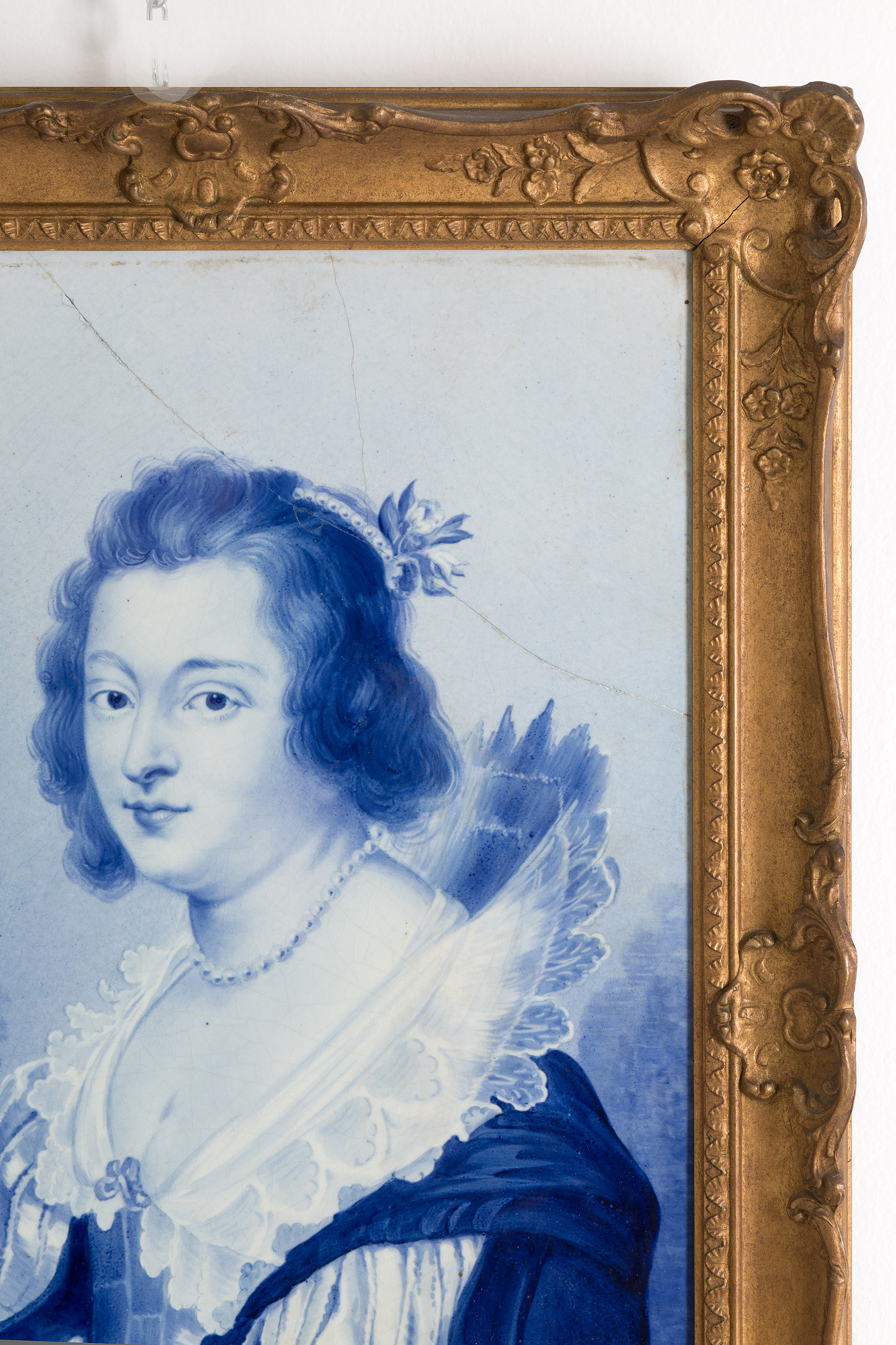 Placca in porcellana dipinta raff. ''GENTILDONNA'' da P. P. Rubens. Marcata DELFT sul retro. Fine XIX secolo. In cornice. Rottura. Mis. Lung. cm. 35 Alt. cm. 56 ca.