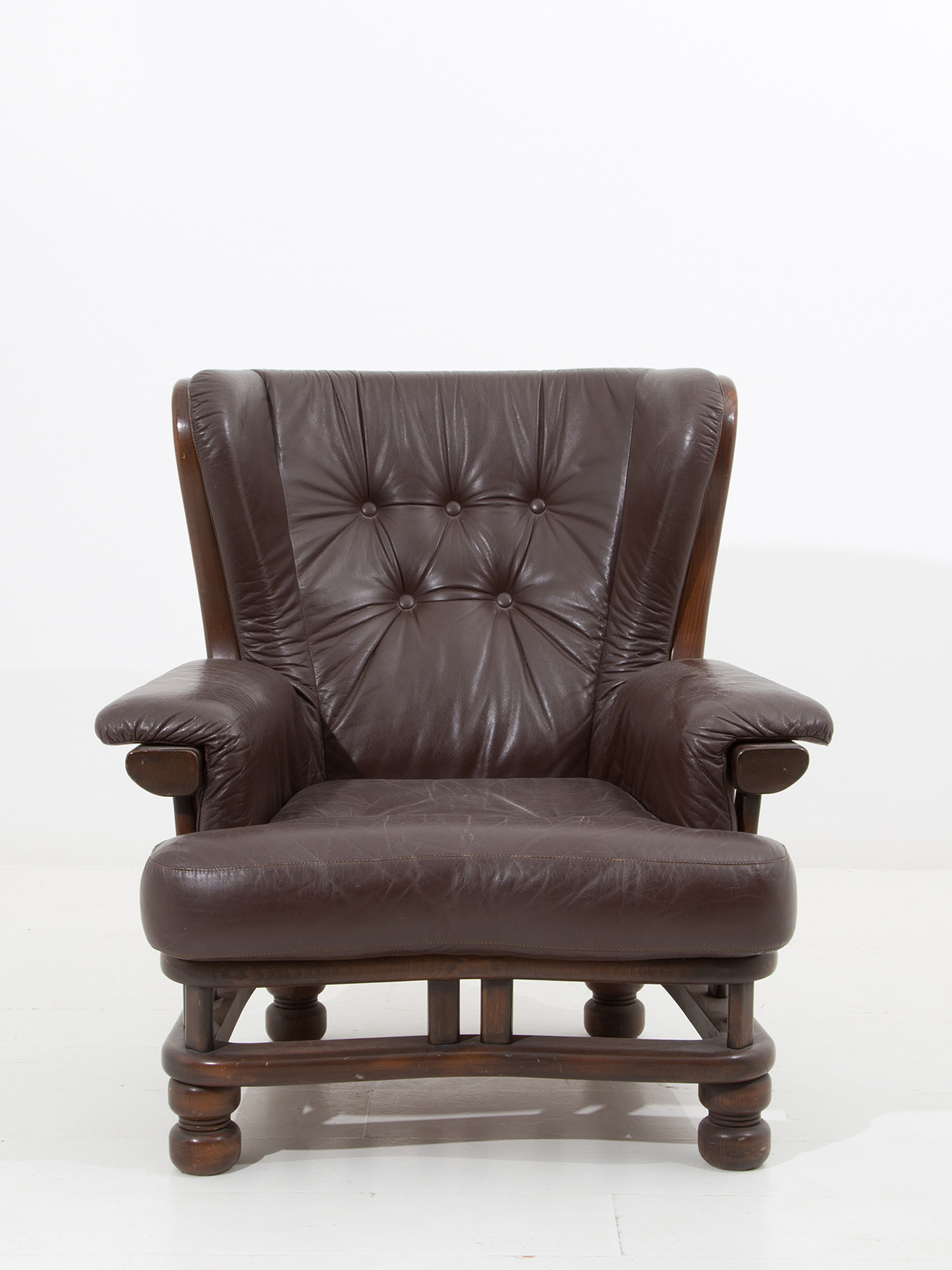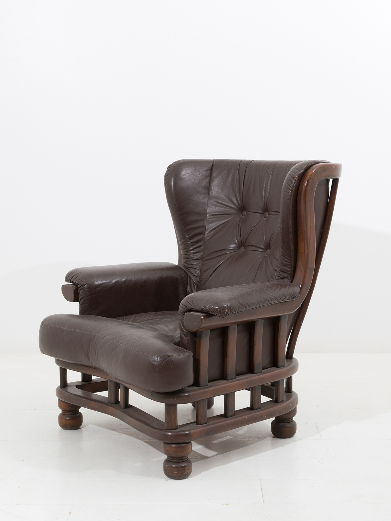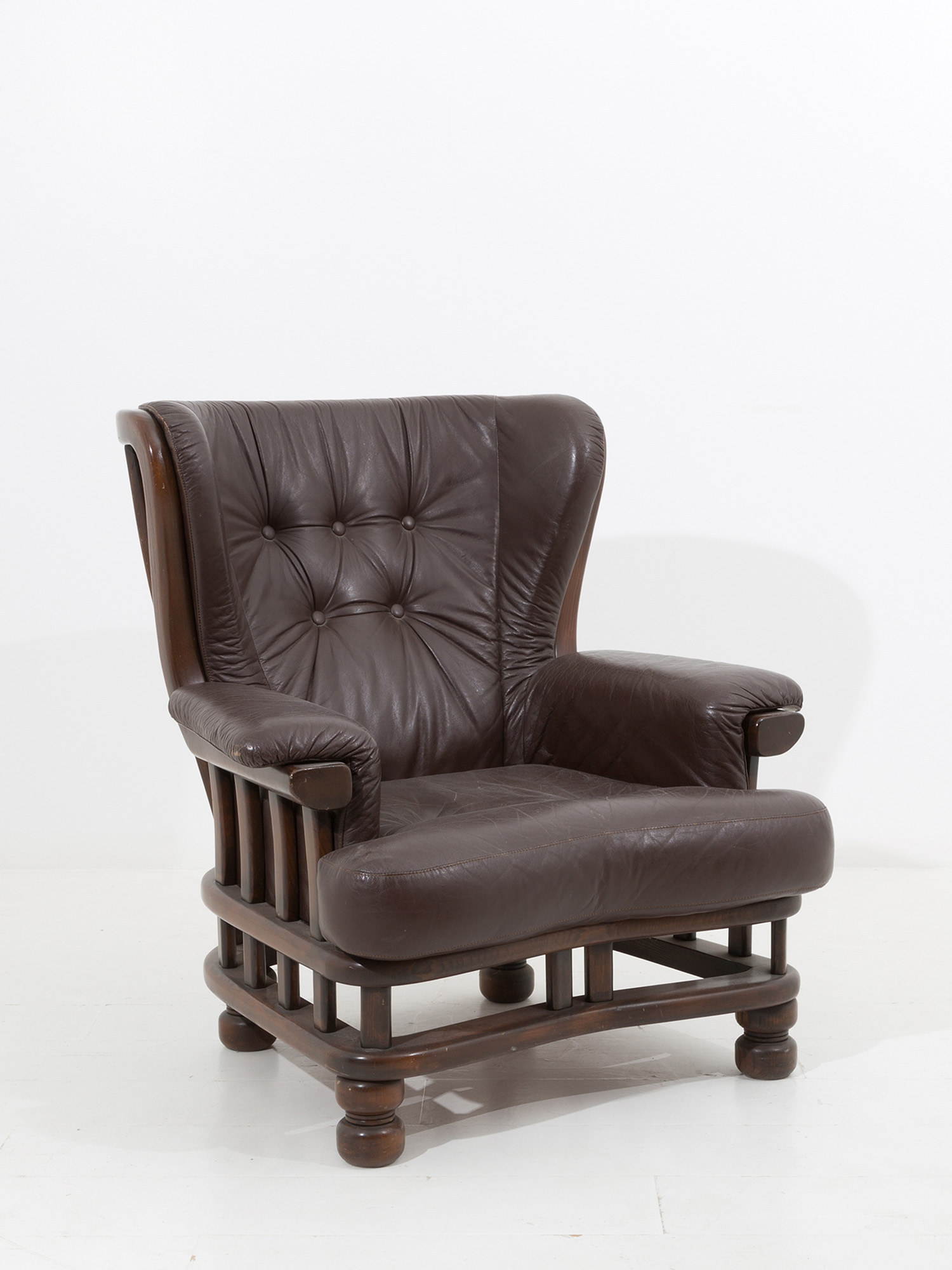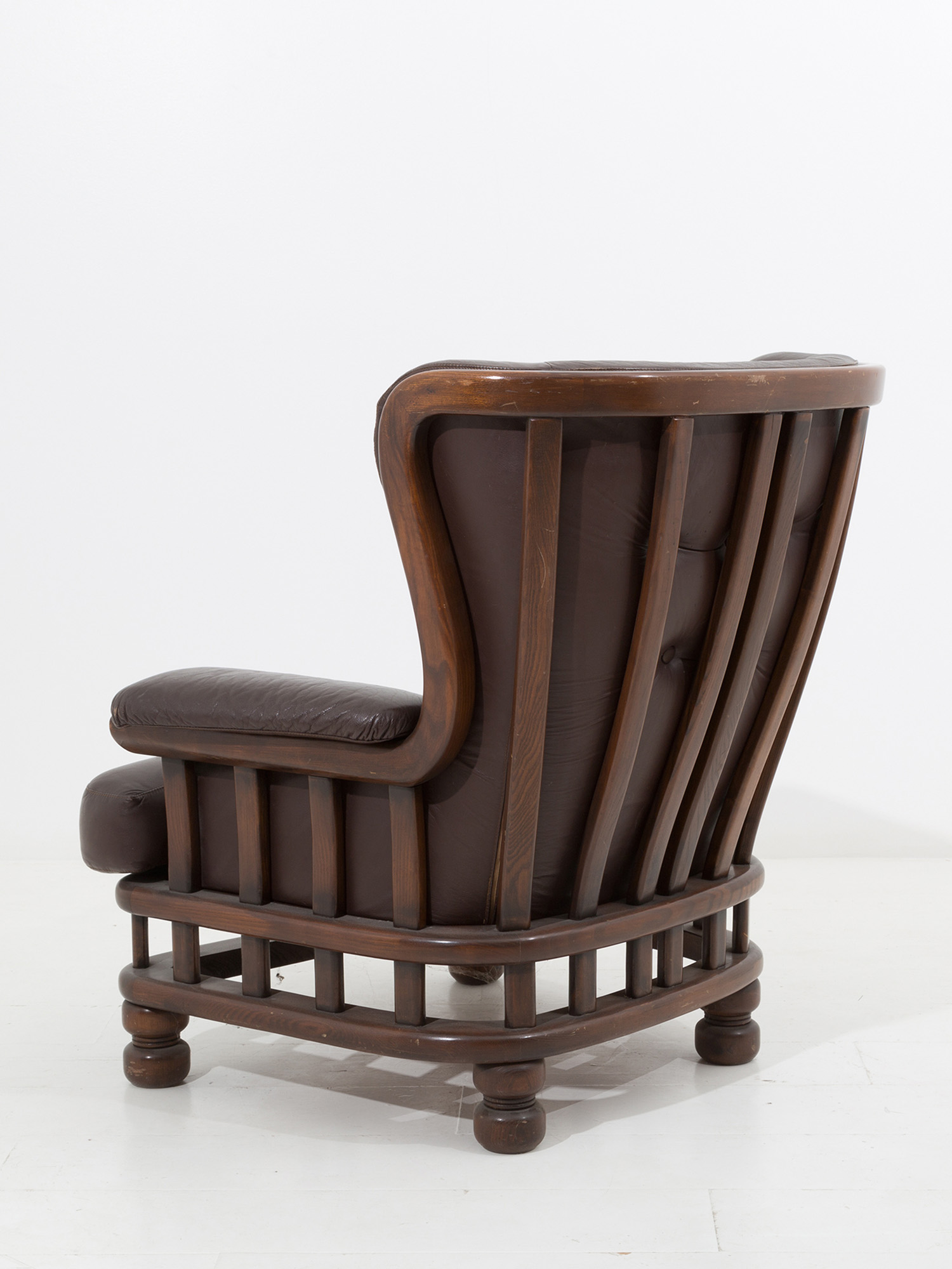 Precedente Lotto 314 Successivo Viscontea Casa d'Aste - Via Guido Cavalcanti 8, 20127 Milano MILANO DECOR AUCTION WEEK - ANTIQUES Seconda sessione martedì 21 settembre 2021 ore 15:00 (UTC +01:00) Wooden and leather armchair. 1980s Poltrona in legno e pelle. Anni '80. Val. 150/350