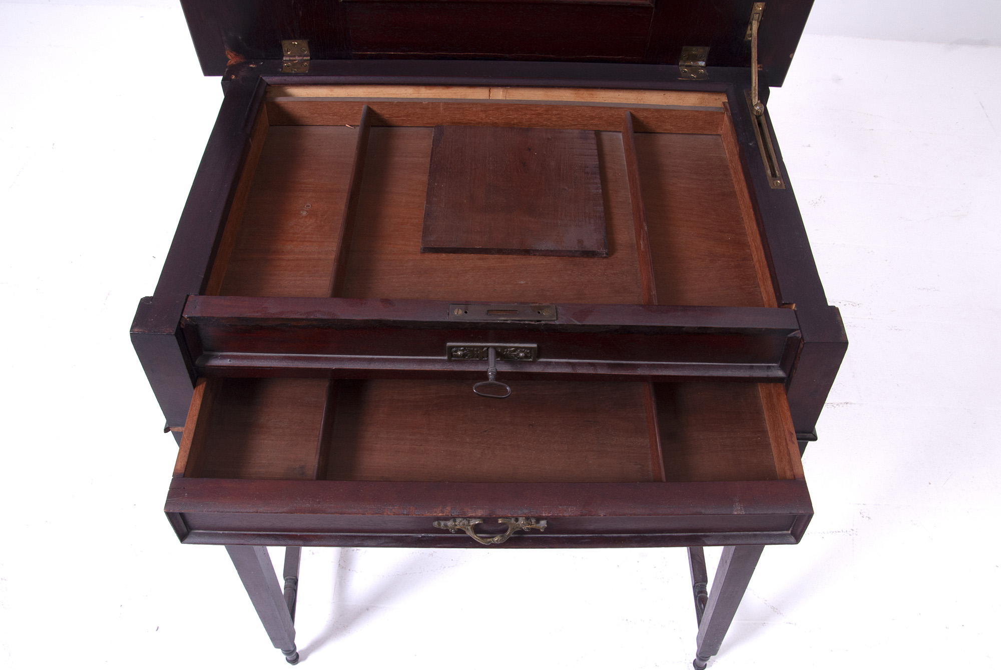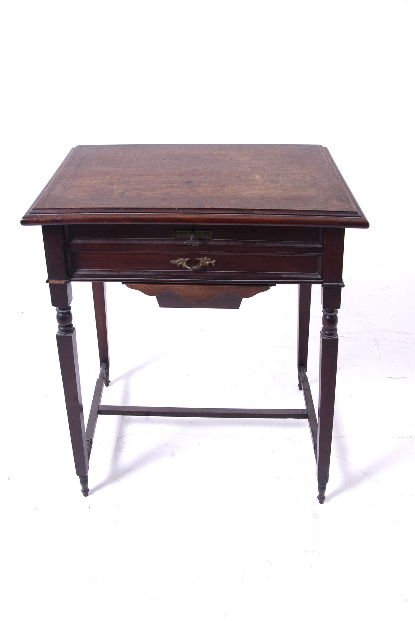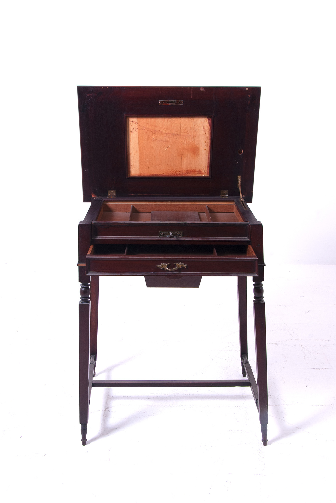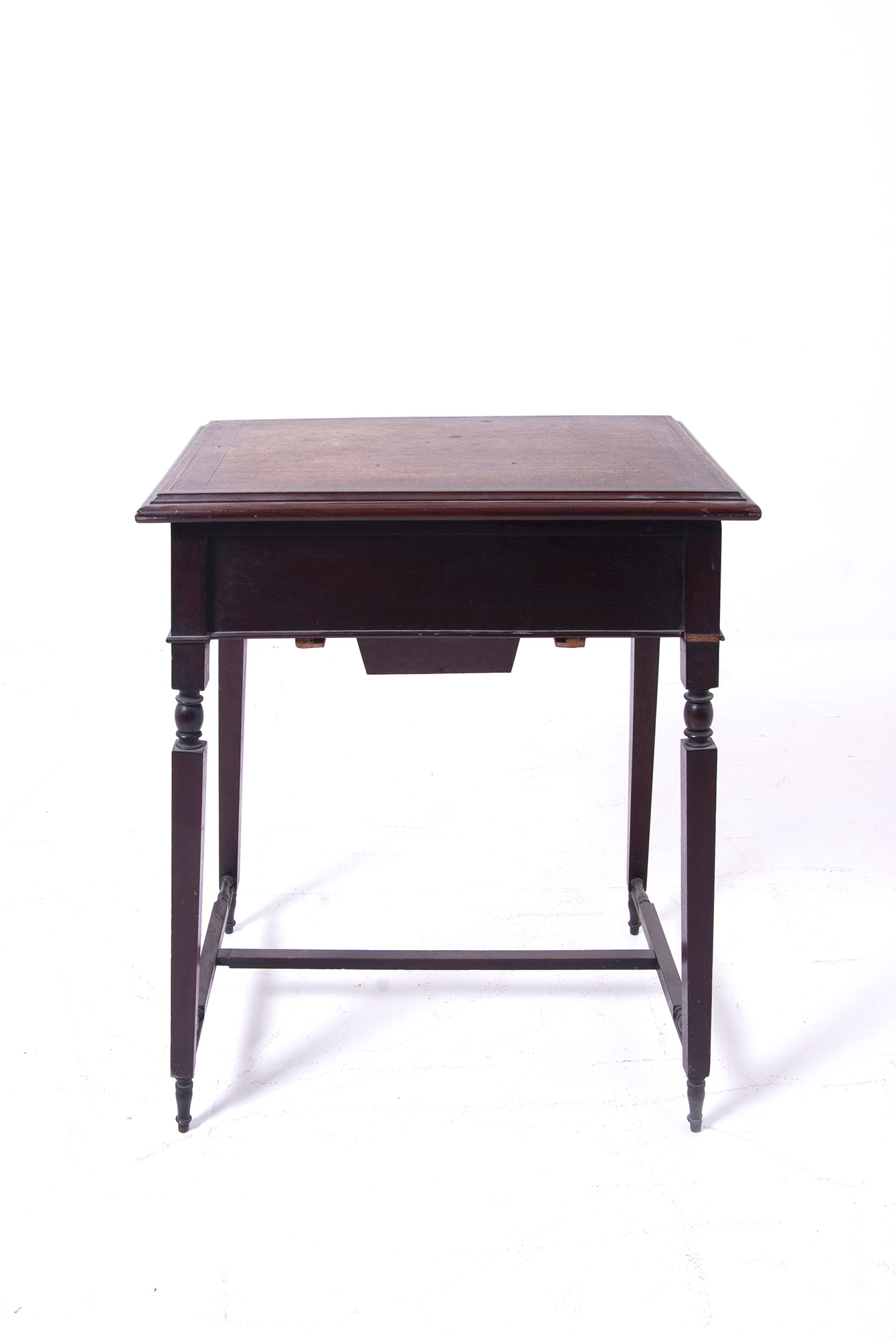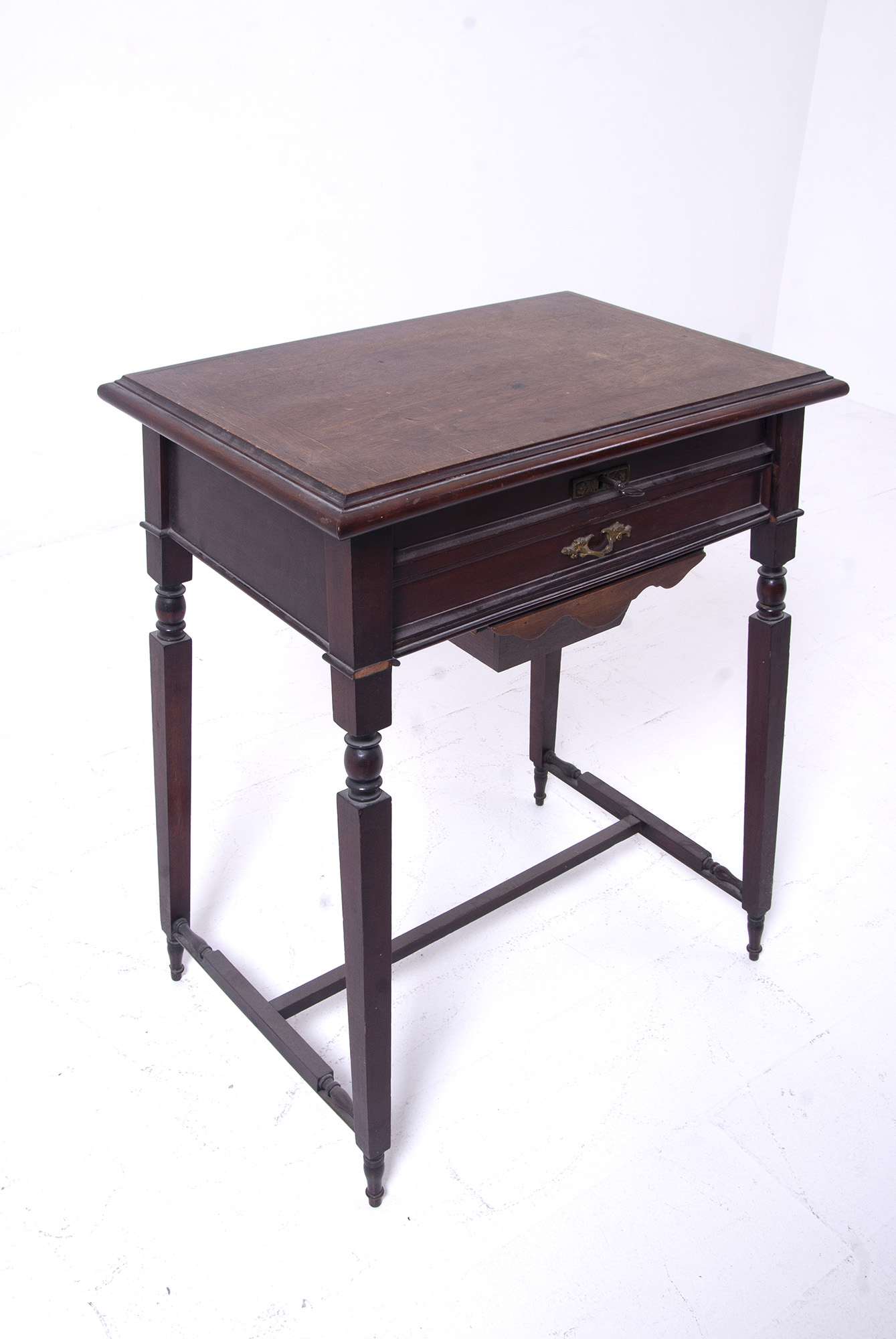 Tavolino da lavoro in mogano. Periodo Liberty. Mis. Lung. cm. 56 Alt. cm. 73 Prof. cm. 37.5 ca.