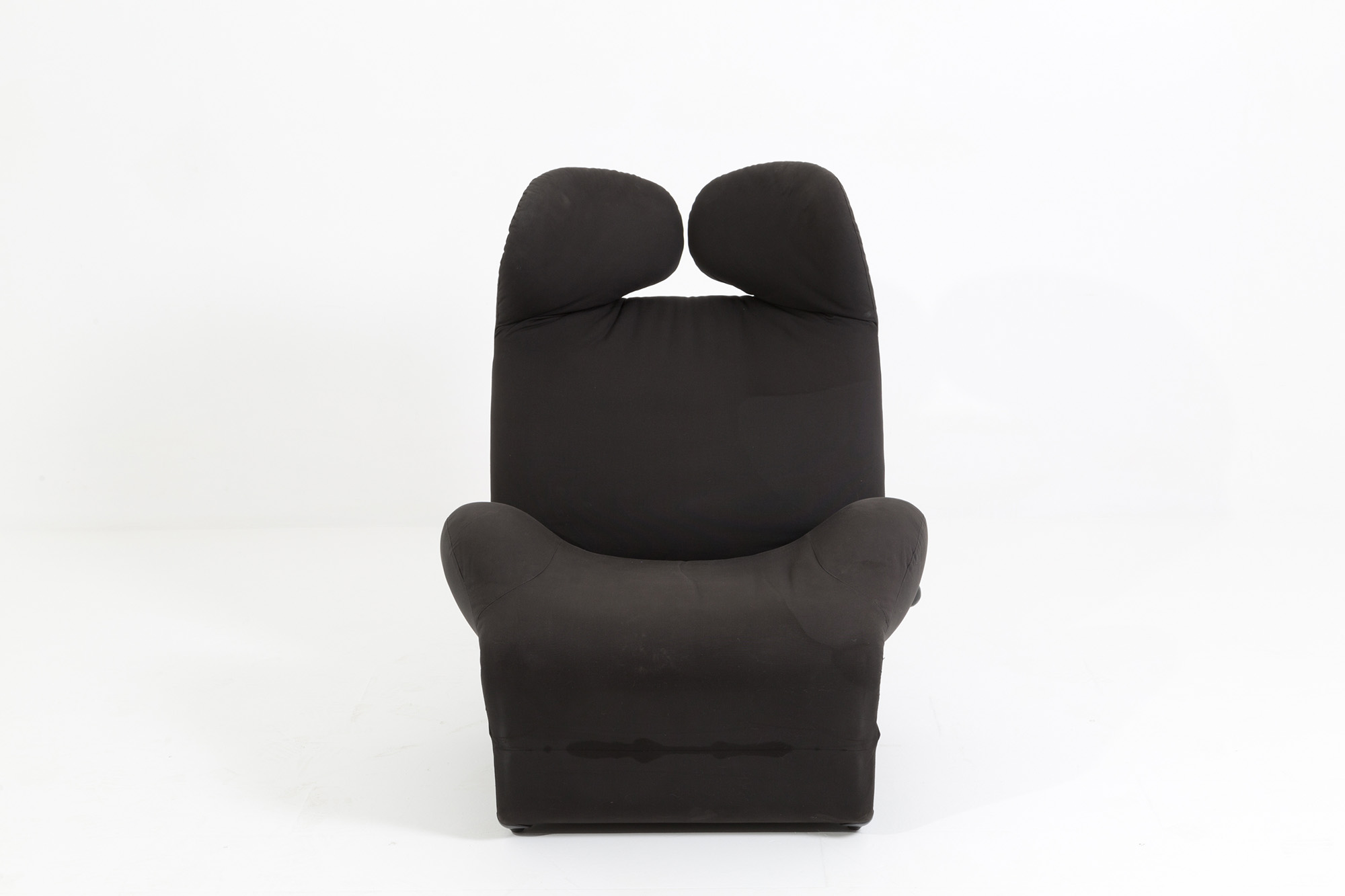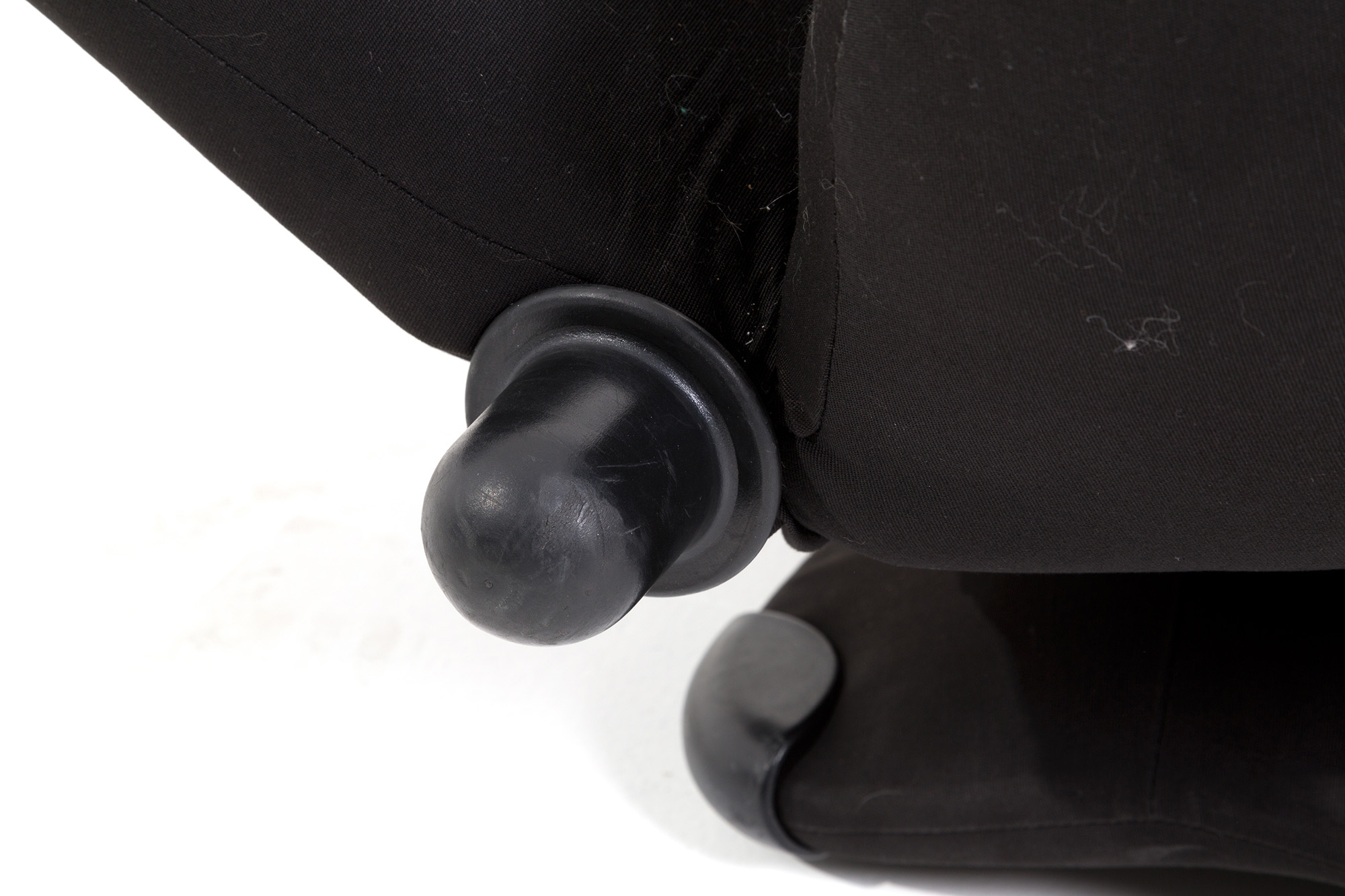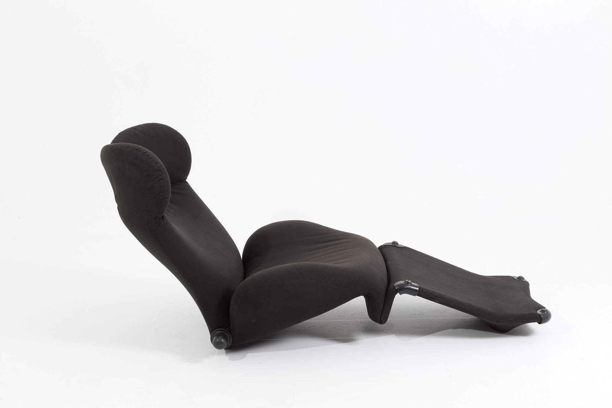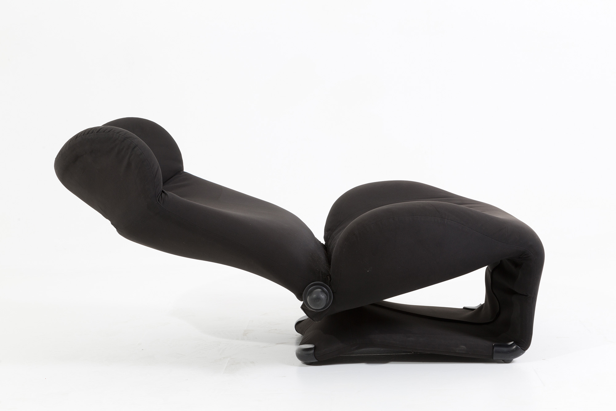 TOSHIYUKI KITA (Osaka, 1942) per CASSINA. Poltrona Wink trasformabile in chaise longue in tessuto nero. Anni '80. Mis. Lung. cm. 180 Alt. cm. 80 Prof. cm. 80 ca.