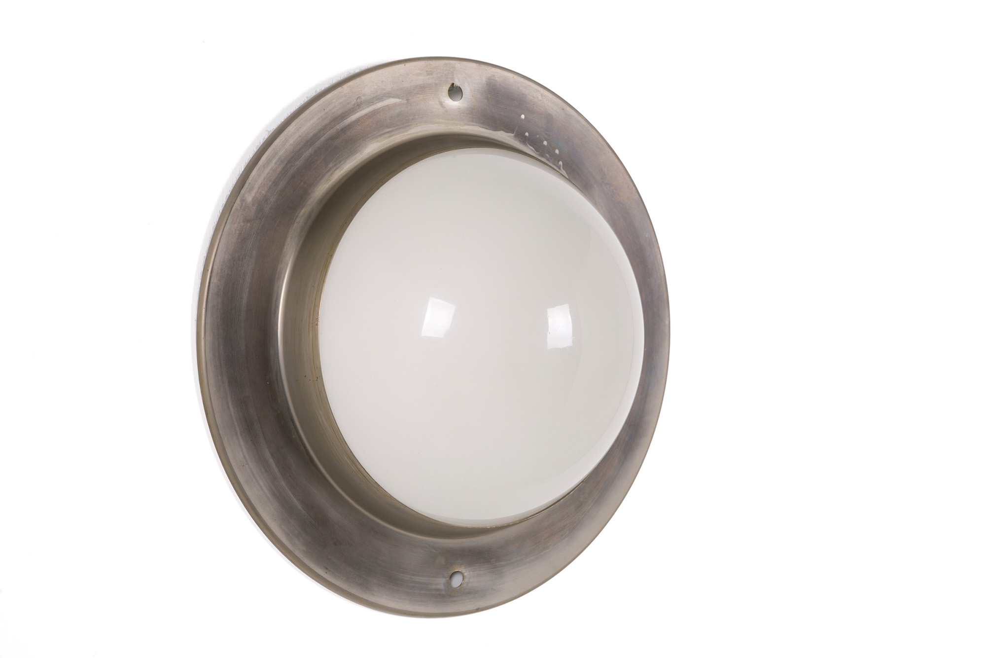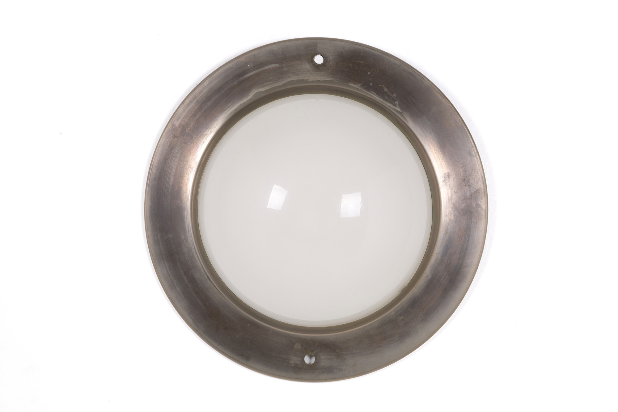 LUIGI CACCIA DOMINIONI (Milano, 1913-2016). Plafoniera in ottone e vetro. Anni '60. Buone condizioni. Mis. Diam. cm. 42 ca.
