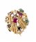 Anello in oro giallo, smeraldi, rubini e diamanti