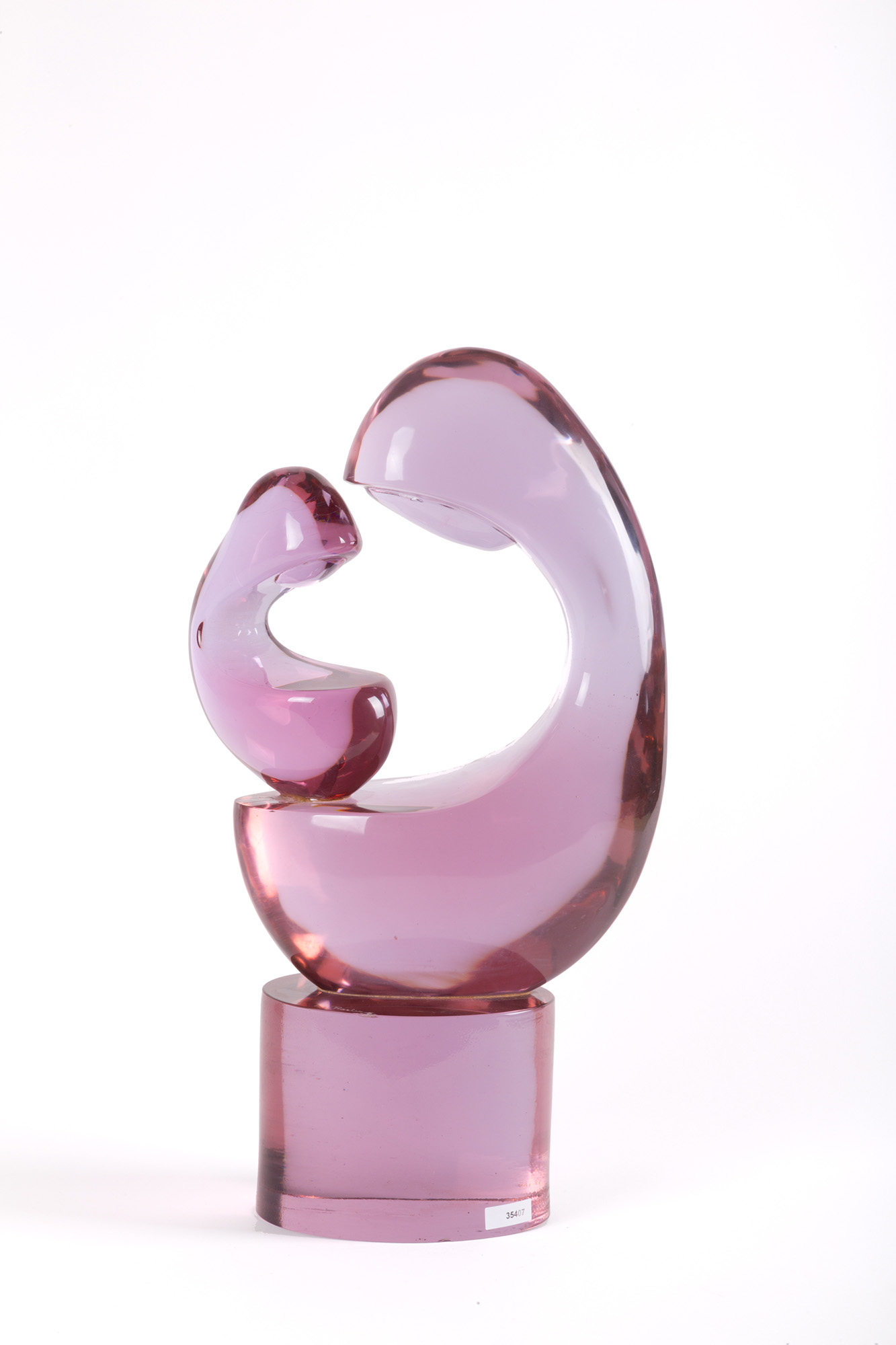 LOREDANO ROSIN (Venezia, 1936-1992). Scultura in pasta di vetro lilla raff. ''MATERNITA' ''. Firmata alla base. Difetti. Mis. Lung. cm. 30 Alt. cm. 55 Prof. cm. 15 ca.